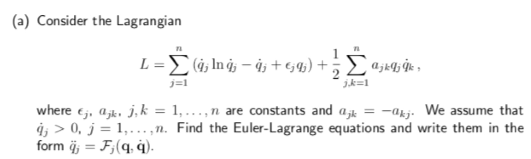 (a) Consider the Lagrangian n n 1 L = [ (Ã j In 9j - 9j + (q);...