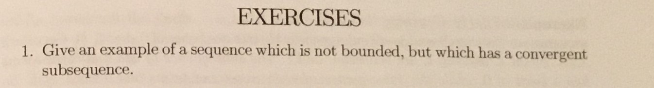 EXERCISES 1. Give an example of a sequence which is not bounded, b...