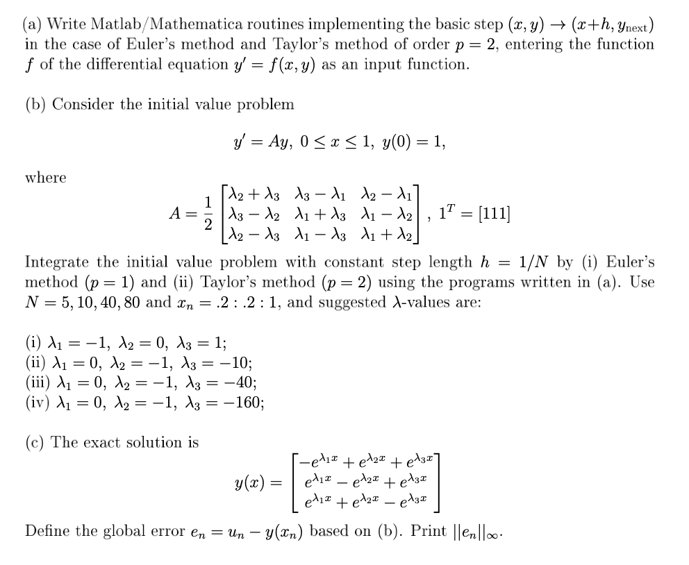 (a) Write Matlab/Mathematica routines implementing the basic step (...