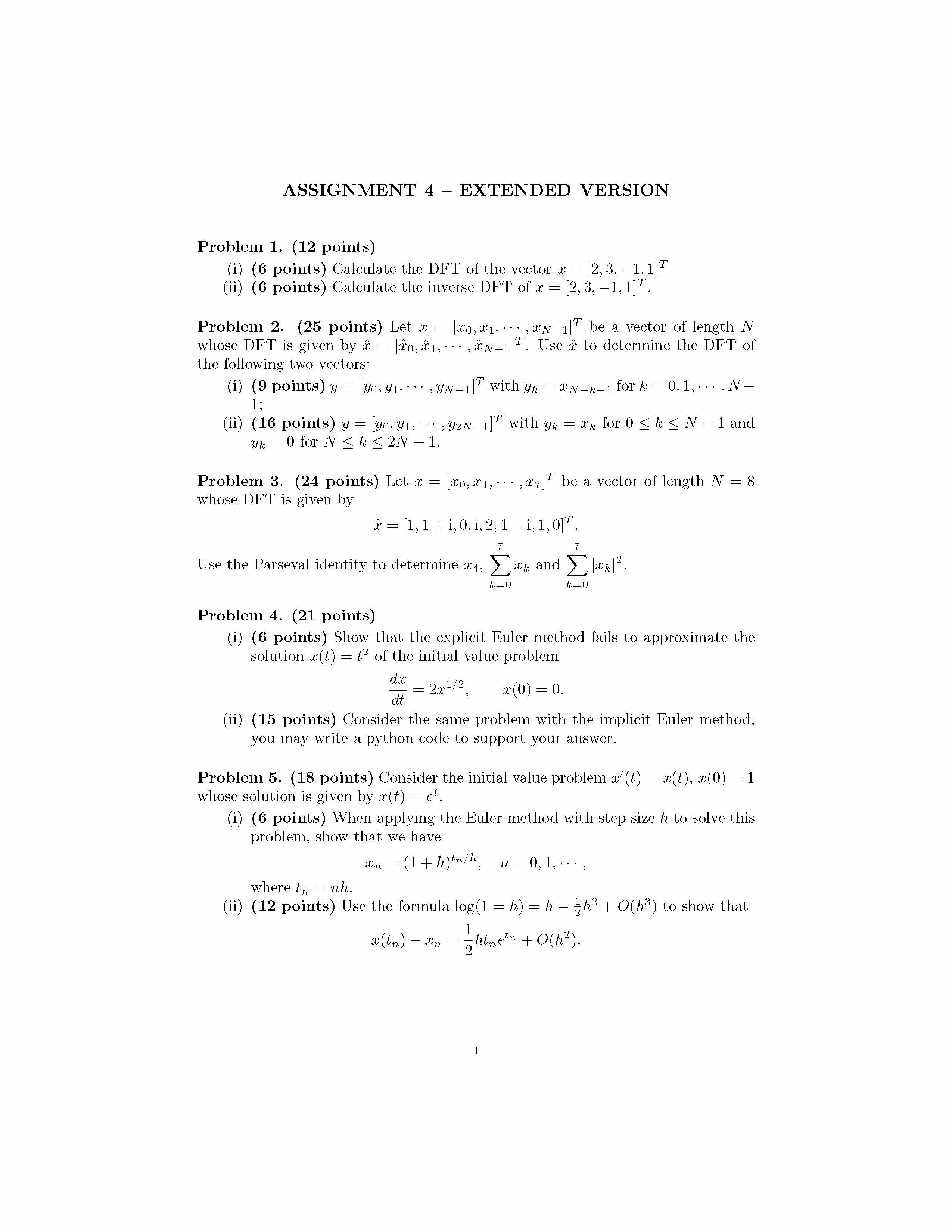 ASSIGNMENT 4 - EXTENDED VERSION Problem 1. (12 points) (i) (6 poi...
