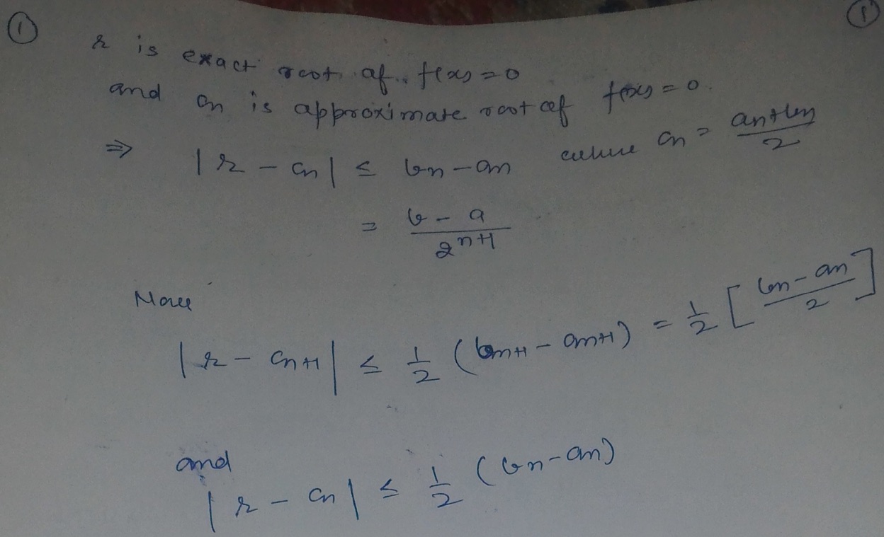 1. In the bisection method, does the limit as n goes to infinity of...