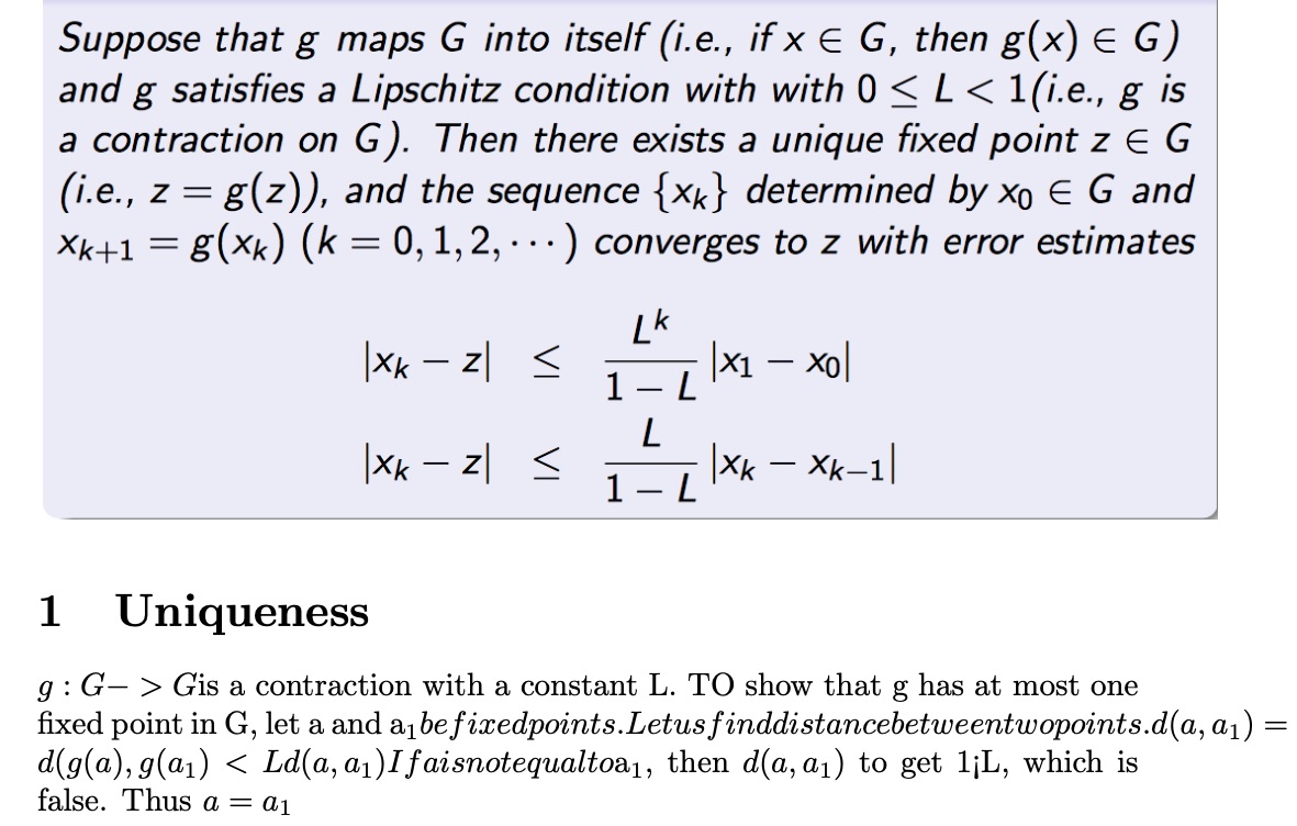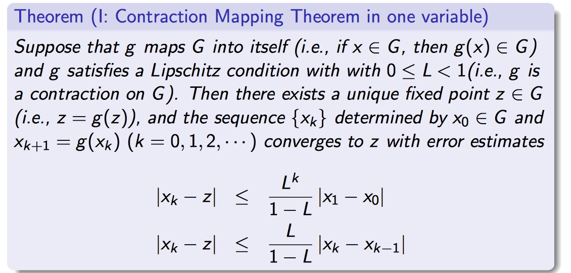 Theorem (I: Contraction Mapping Theorem in one variable) Suppose t...
