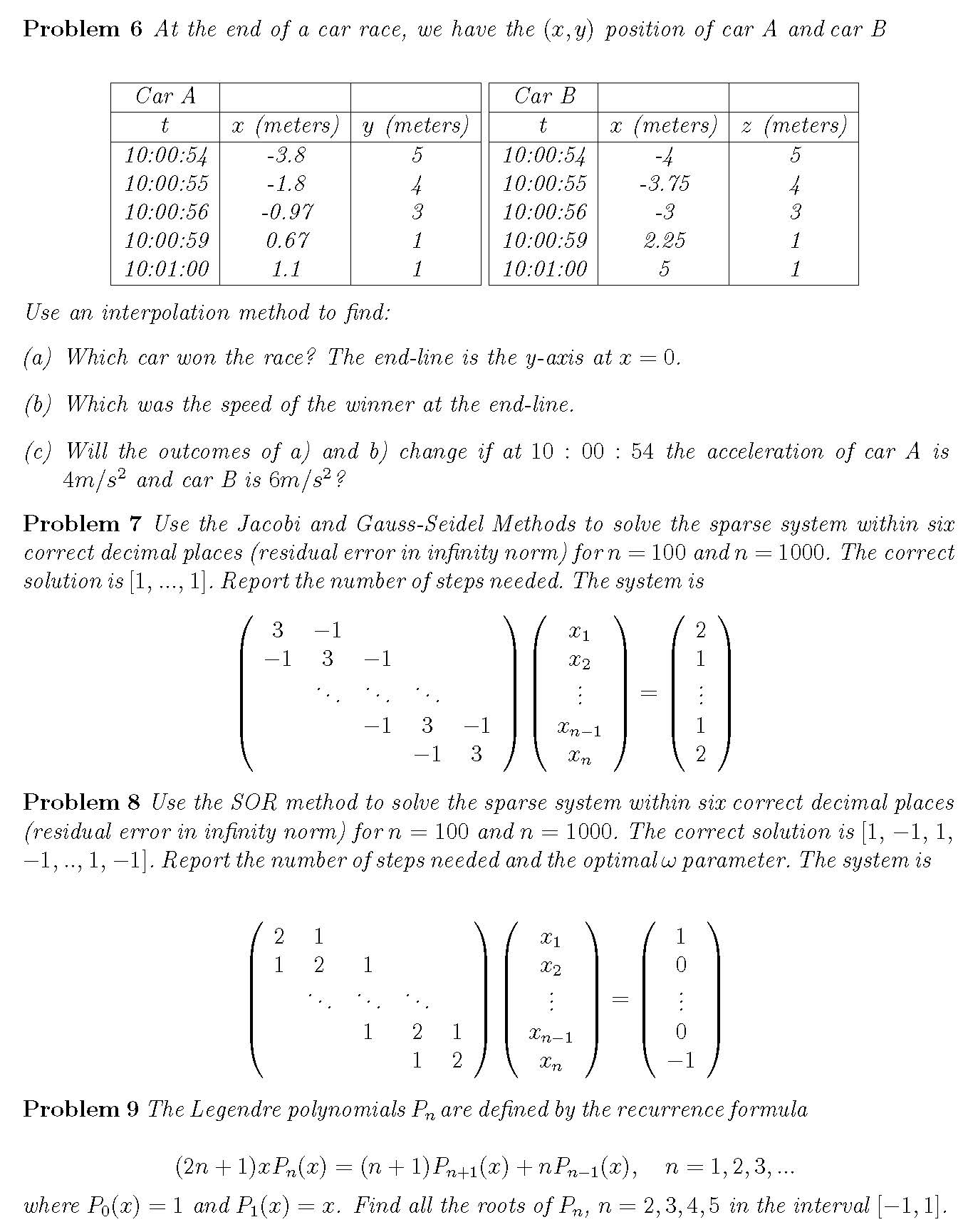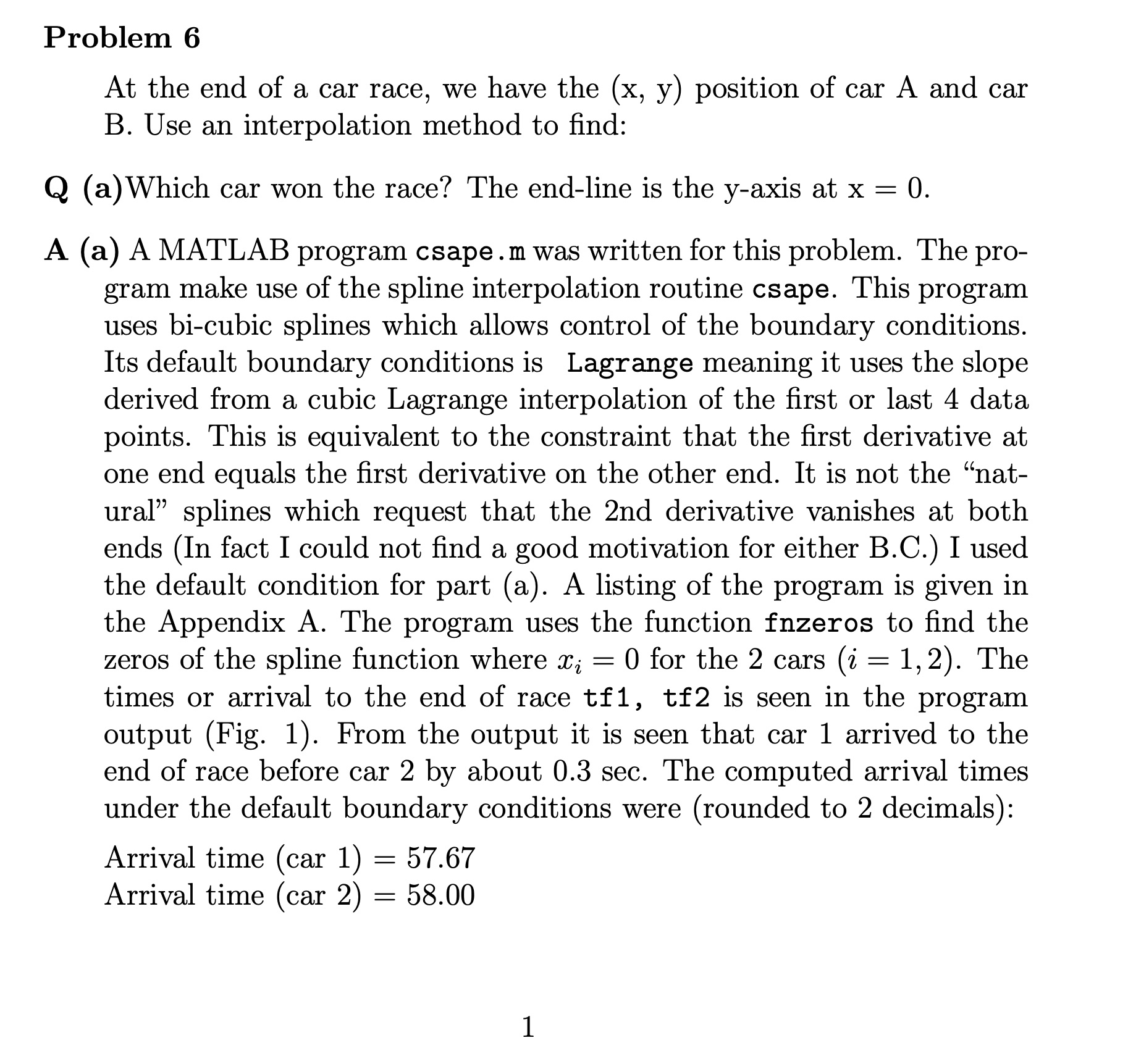Problem 6 At the end of a car race, we have the (x; y) position of...