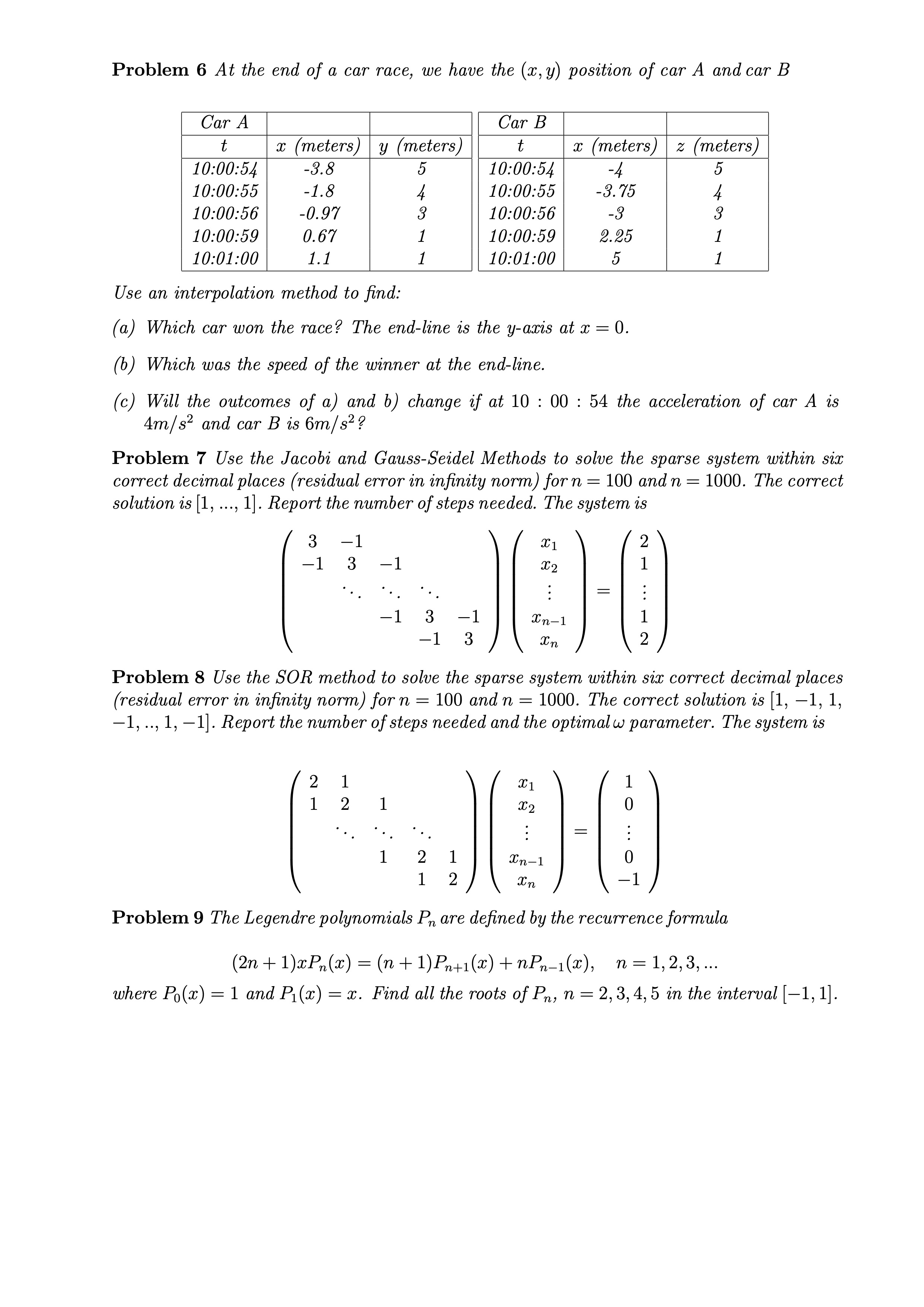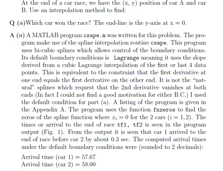 Problem 6 At the end of a car race, we hare the (x.y) position of c...