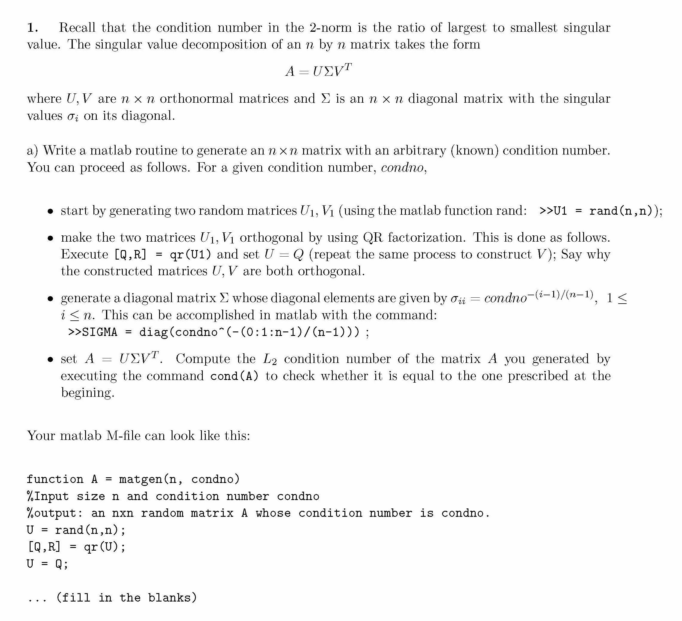 1. Recall that the condition number in the 2-norm is the ratio of l...