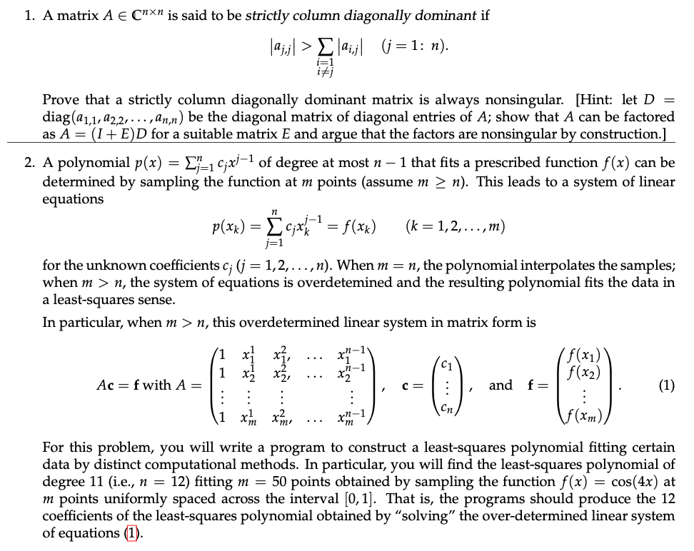 1. A matrix A € is said to be strictly column diagonally dominant...