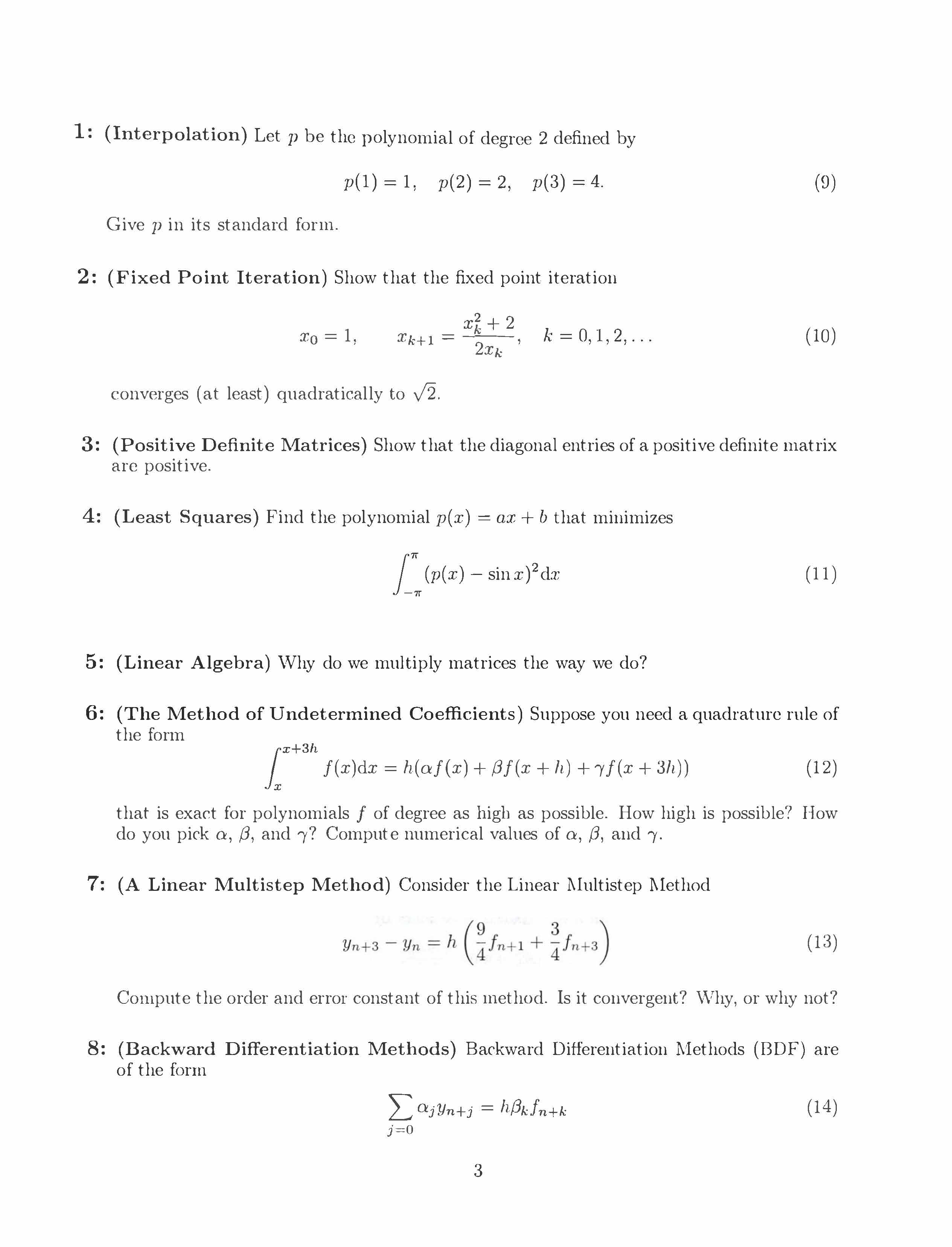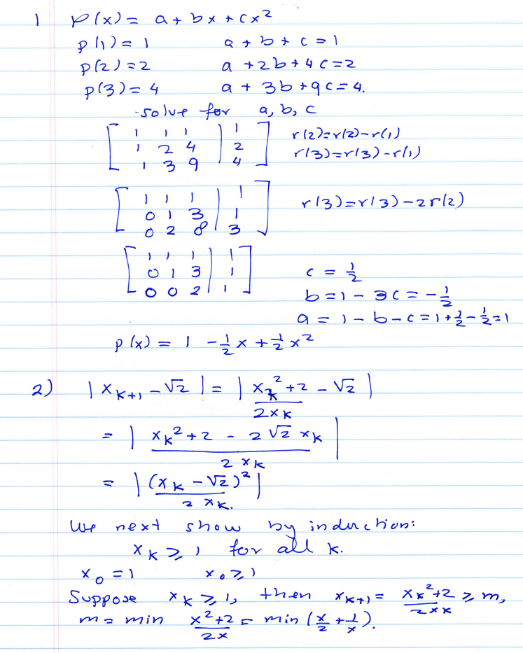 1: (Interpolation) Let p be the polynomial of degree 2 defuned by...