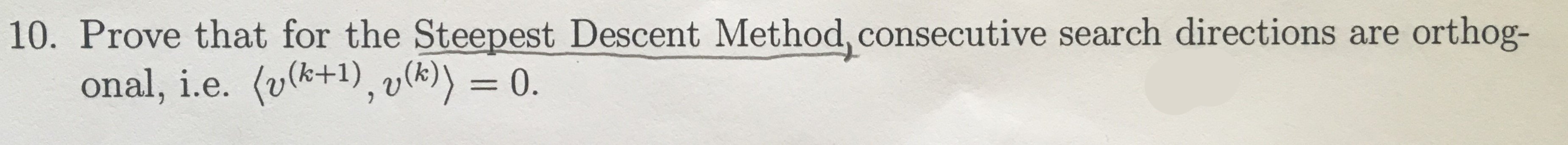 10. Prove that for the Steepest Descent Method, consecutive search...