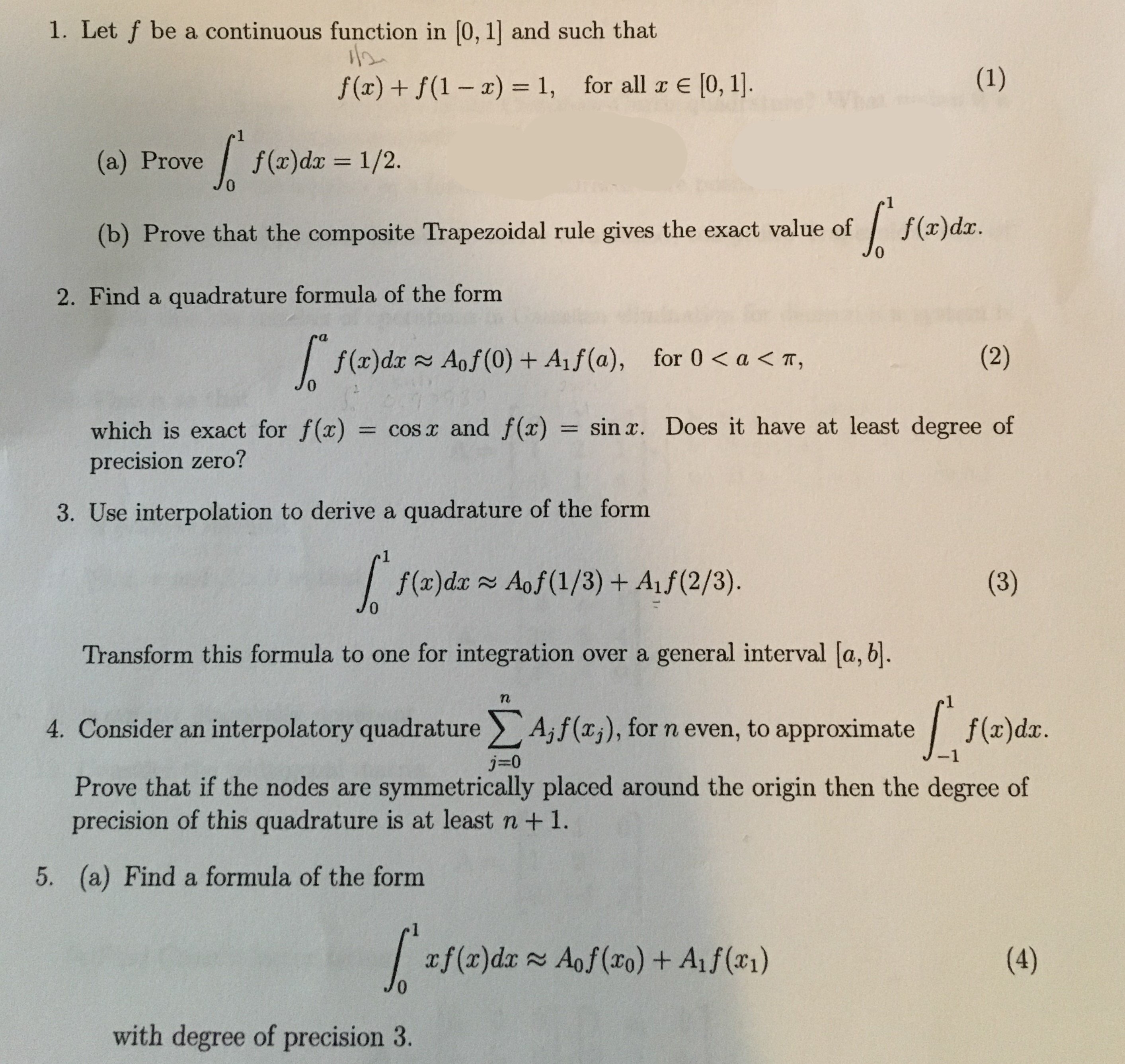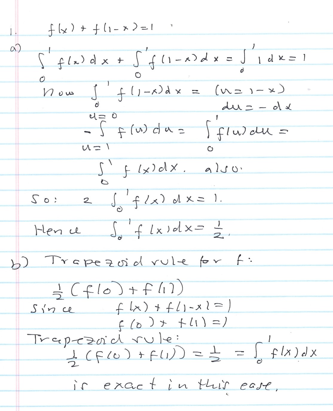 1. Let f be a continuous function in [0, 1] and such that 1/2 f(x...