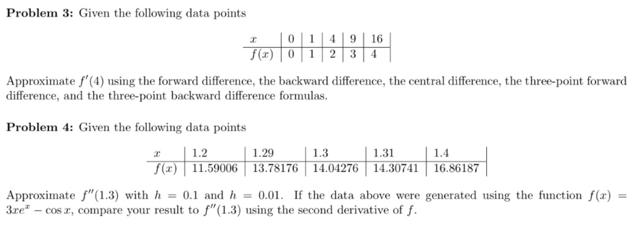 Problem 3: Given the following data points x 1 4 9 16 f(x) 1...