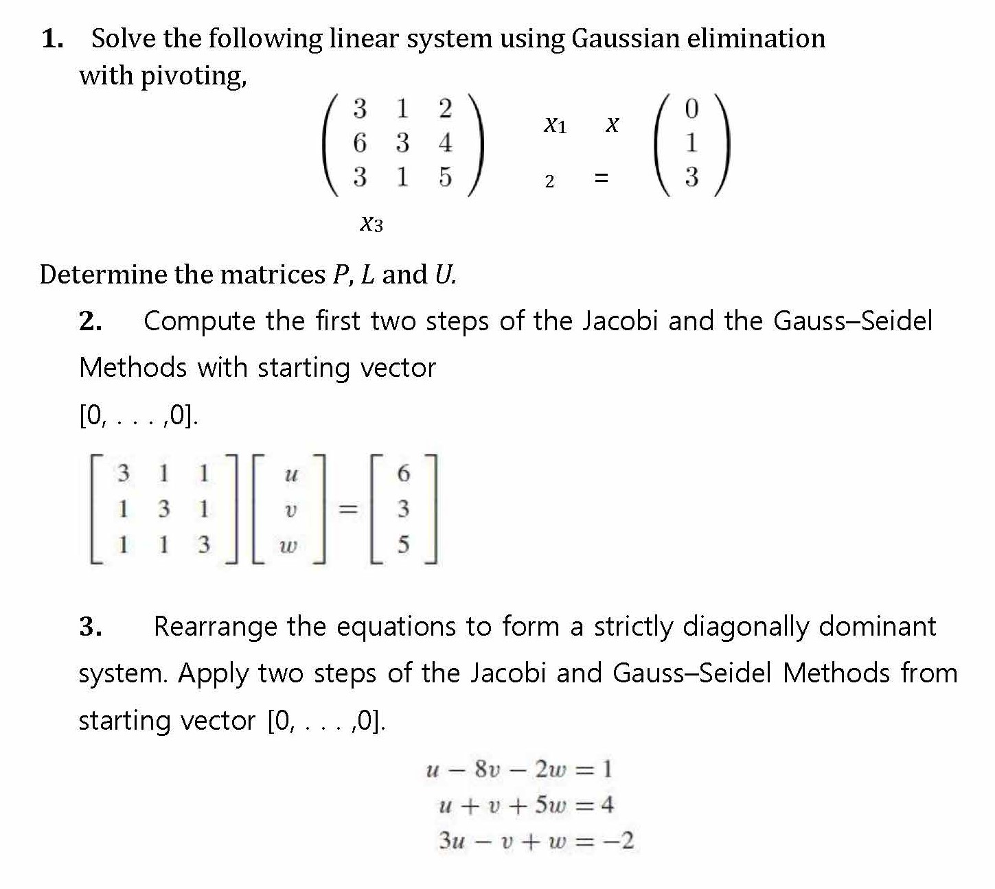 1. Solve the following linear system using Gaussian elimination wi...