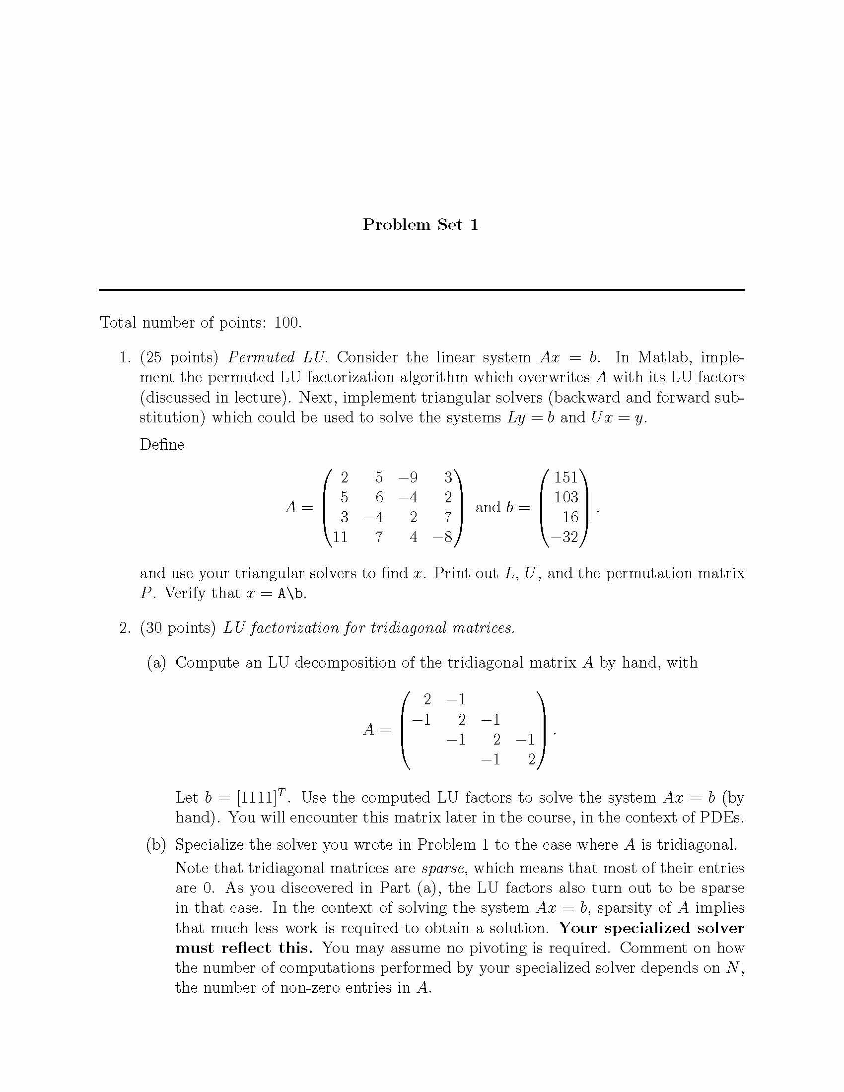 Problem Set 1 1. (25 points) Permuted LU. Consider the linear sys...