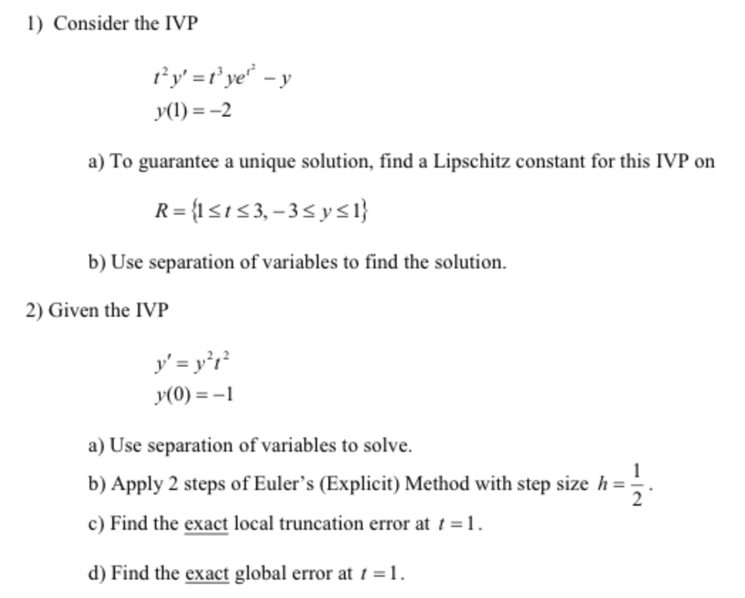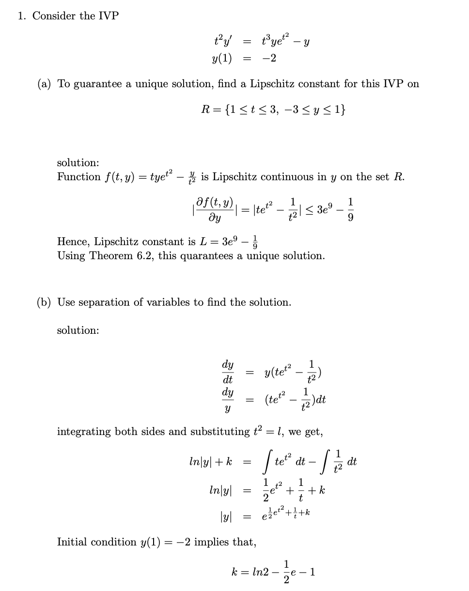 1) Consider the IVP y(1)==2 a) To guarantee a unique solution, fi...