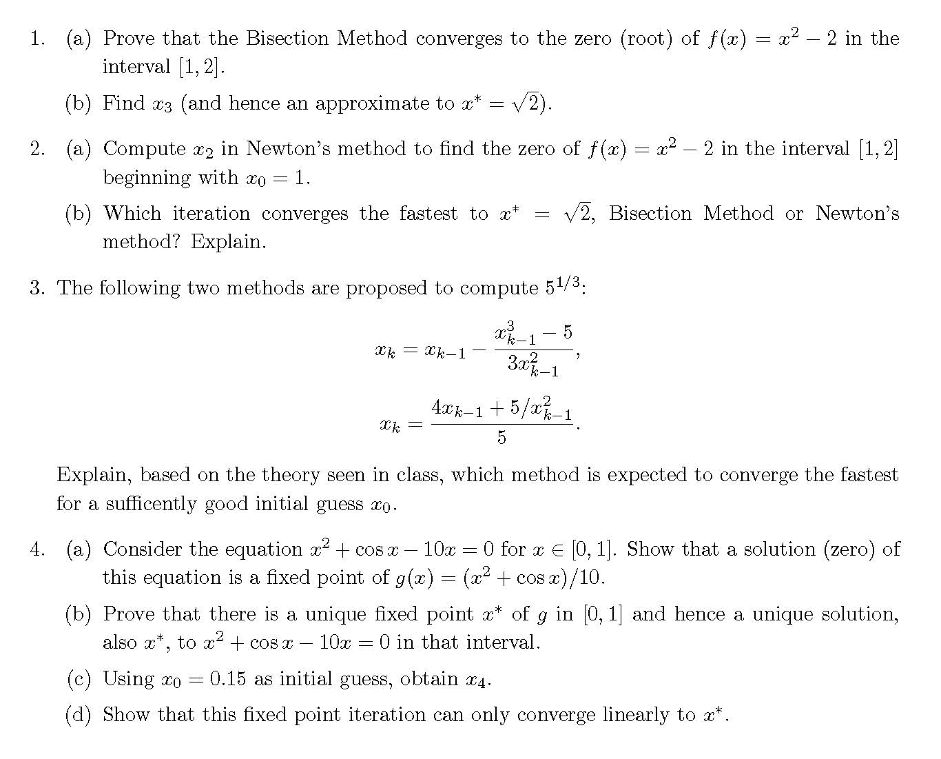 1. (a) Prove that the Bisection Method converges to the zero (root)...