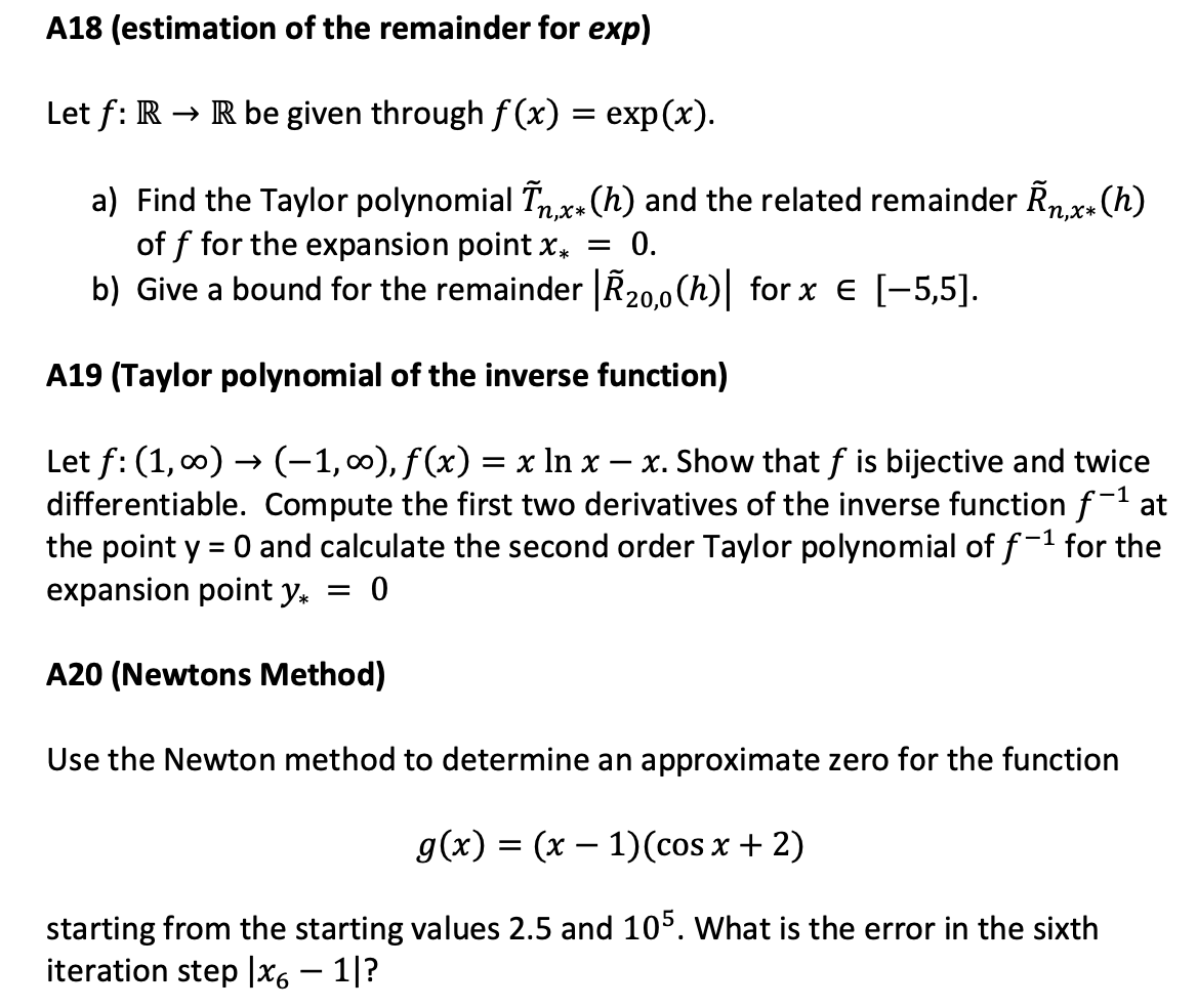A18 (estimation of the remainder for exp) Let f: R R be given thr...