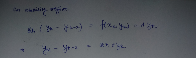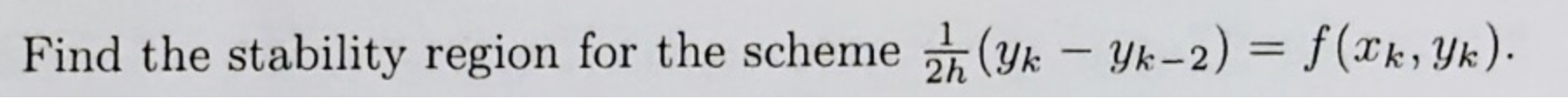 Find the stability region for the scheme 2h 1 (yk - yk-2) = f(xk,Y...