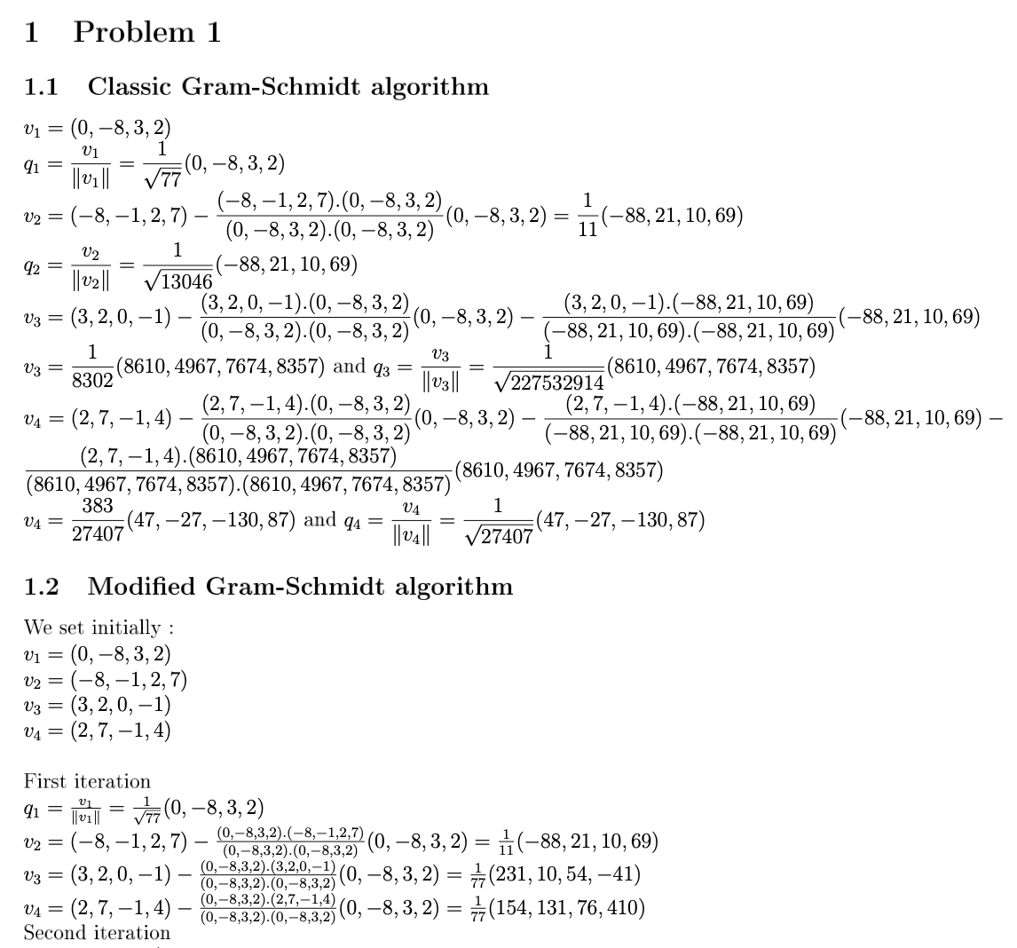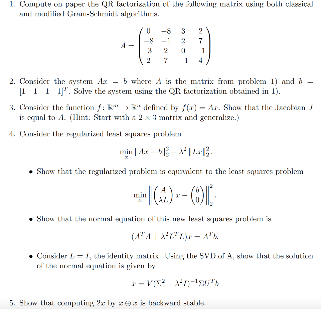 1. Compute on paper the QR factorization of the following matrix us...