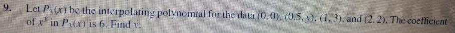 9. of 13 in P3(x) is 6. Find y- Let P3(x) be the interpolating po...