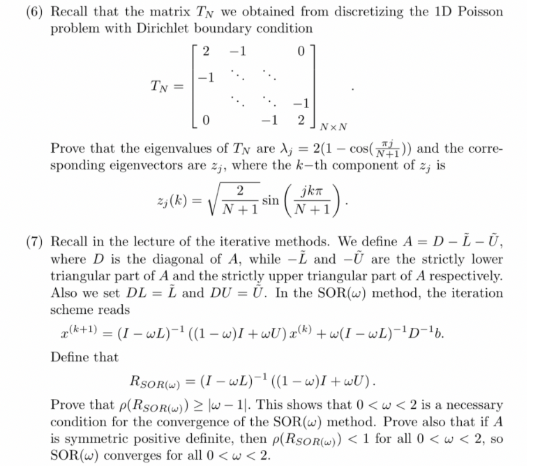 (6) Recall that the matrix TN we obtained from discretizing the 1D...