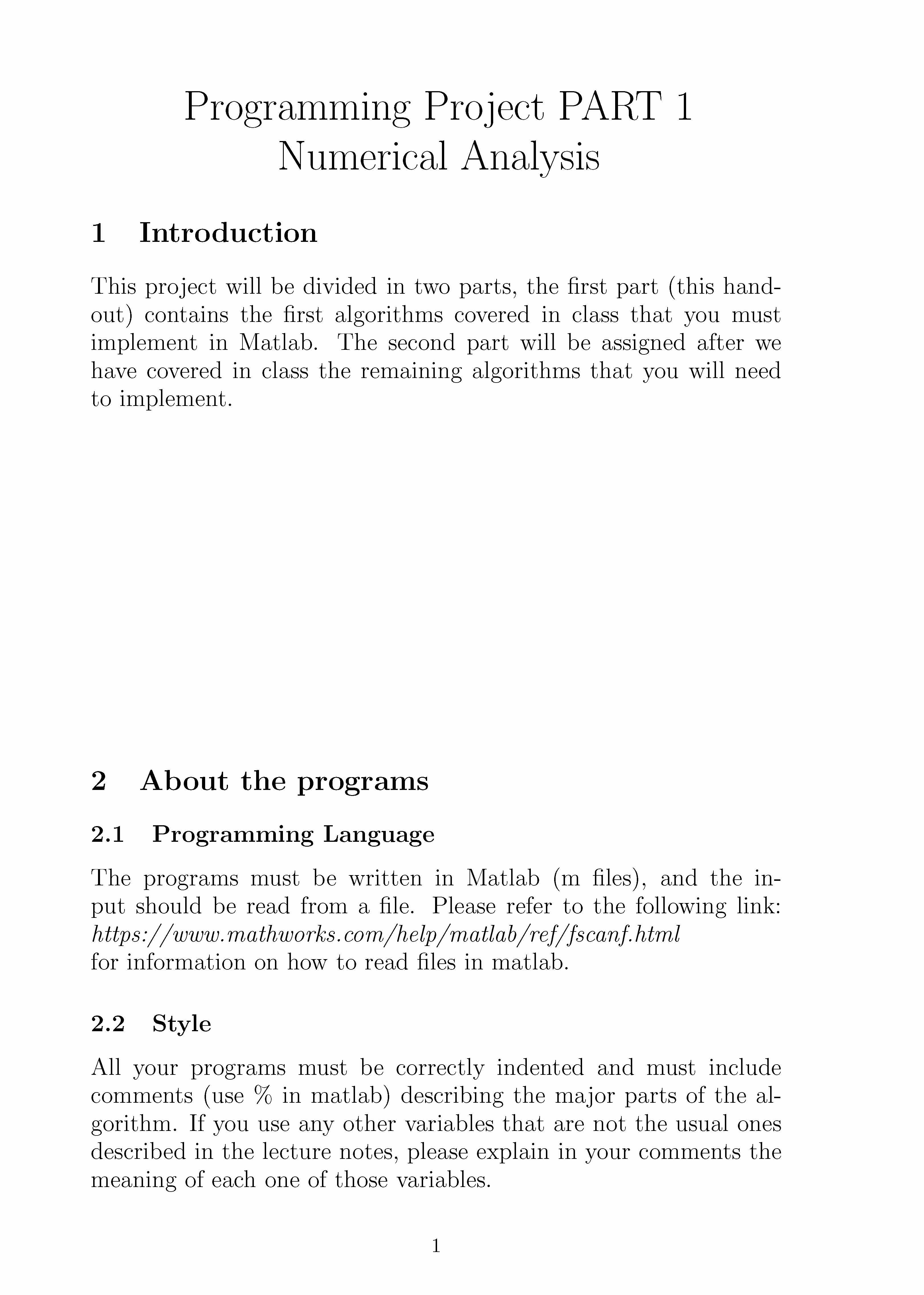 Programming Project PART 1 Numerical Analysis 1 Introduction Thi...