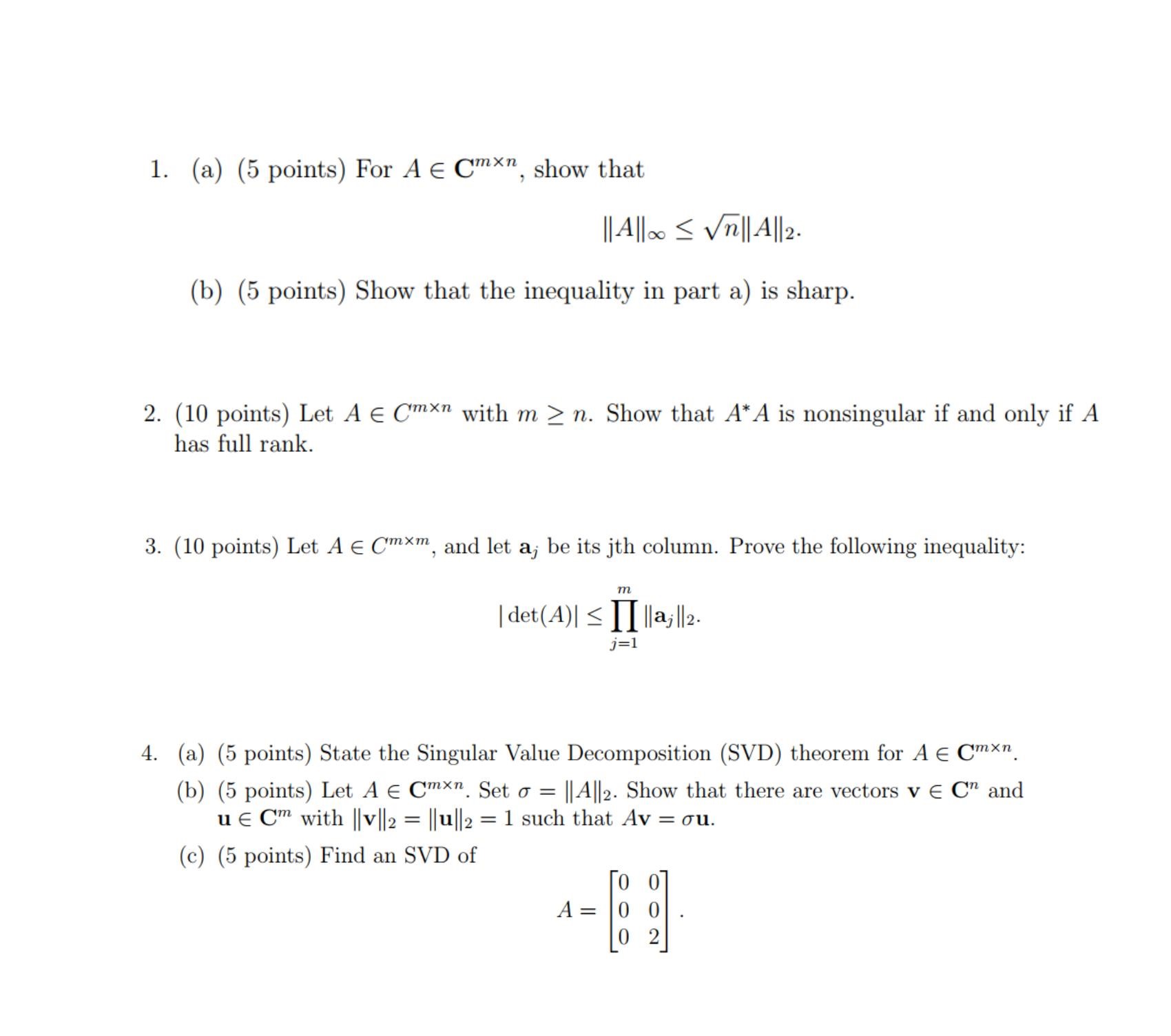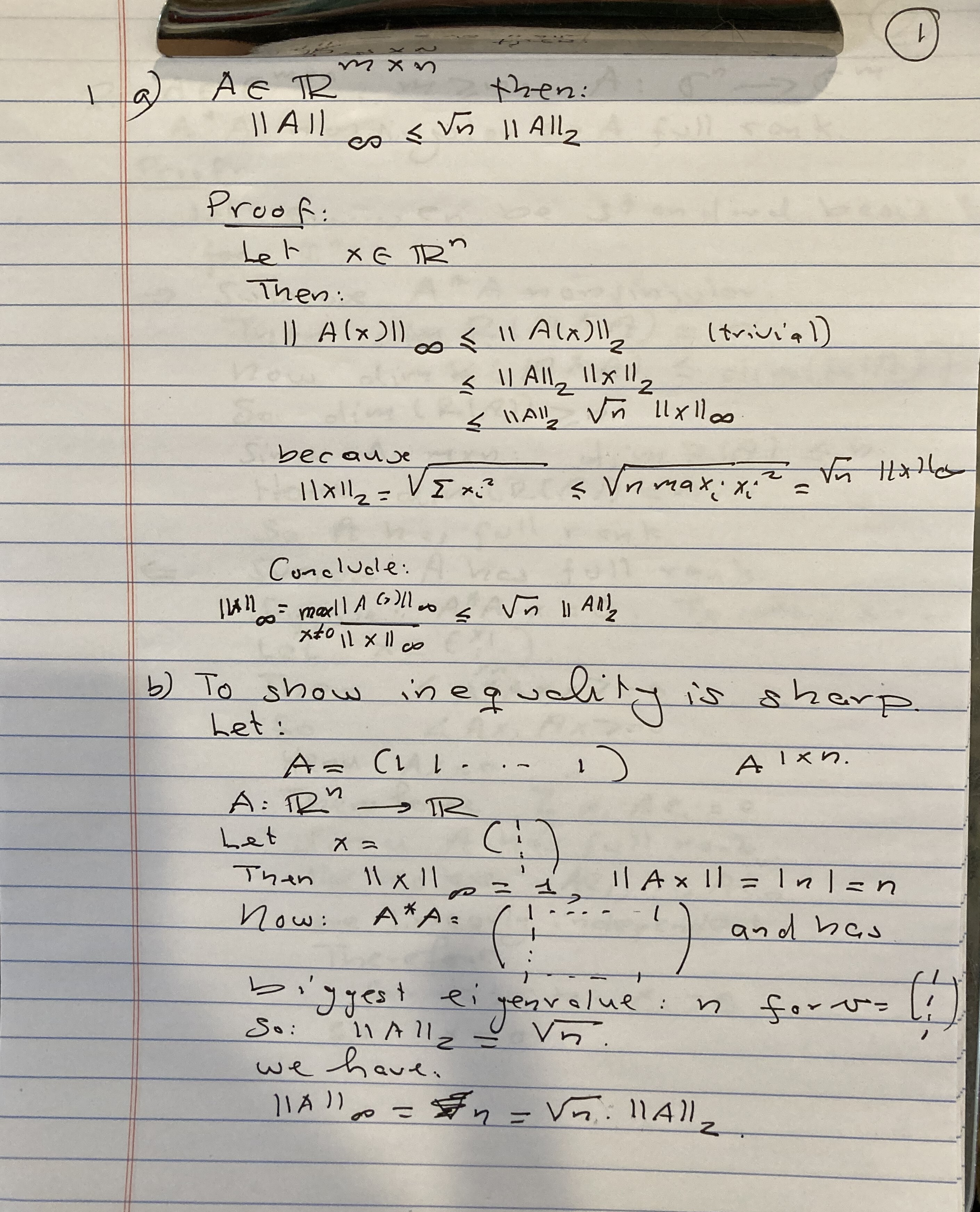 1. (a) (5 points) For , show that ||A|loo < (b) (5 points) Sho...
