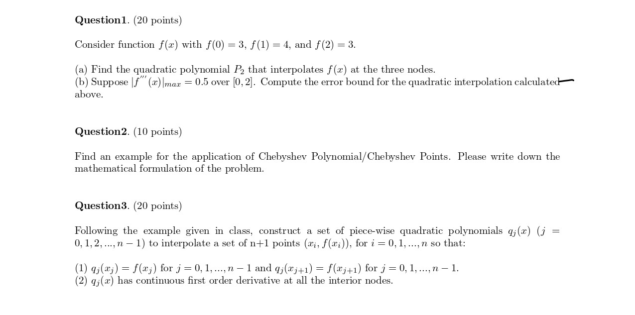 Question1. (20 points) Consider function f(x) with f(0) = 3, f(1) ...