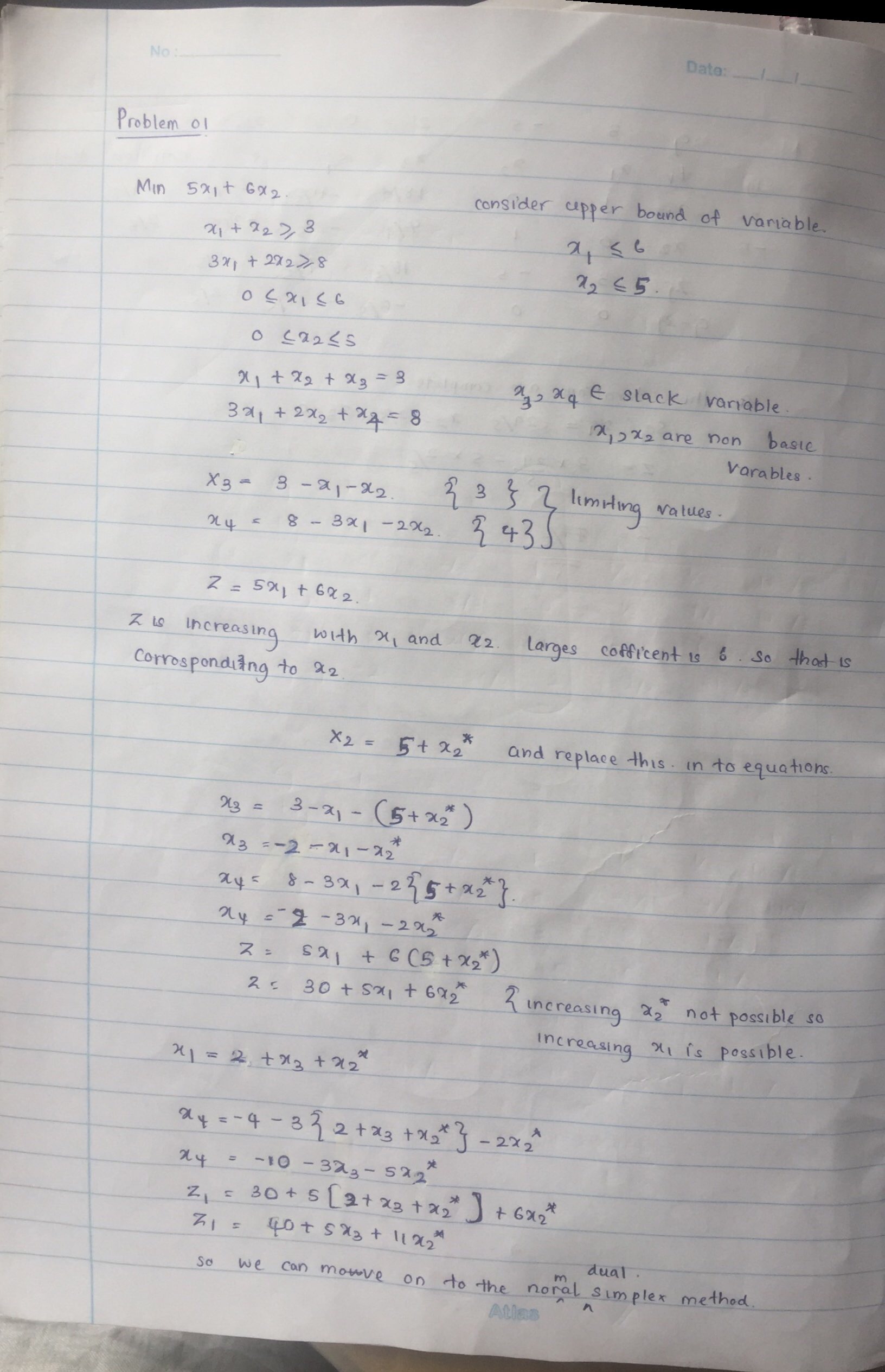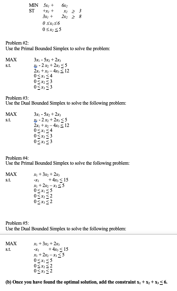 MIN 5x1 + 6x2 ST +x1 + X2 > 3 3x1 + 2x2 > 8 0 5x156 0...