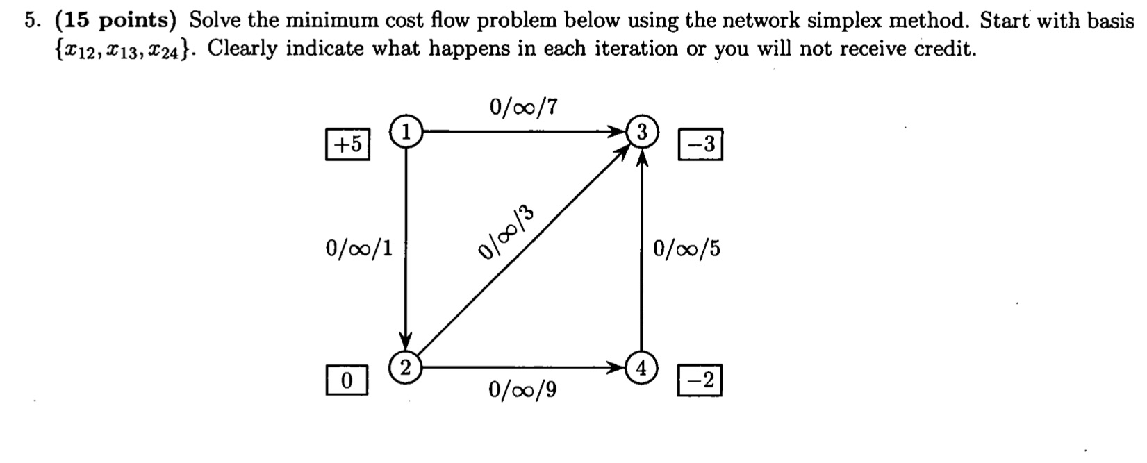 5. (15 points) Solve the minimum cost flow problem below using the ...