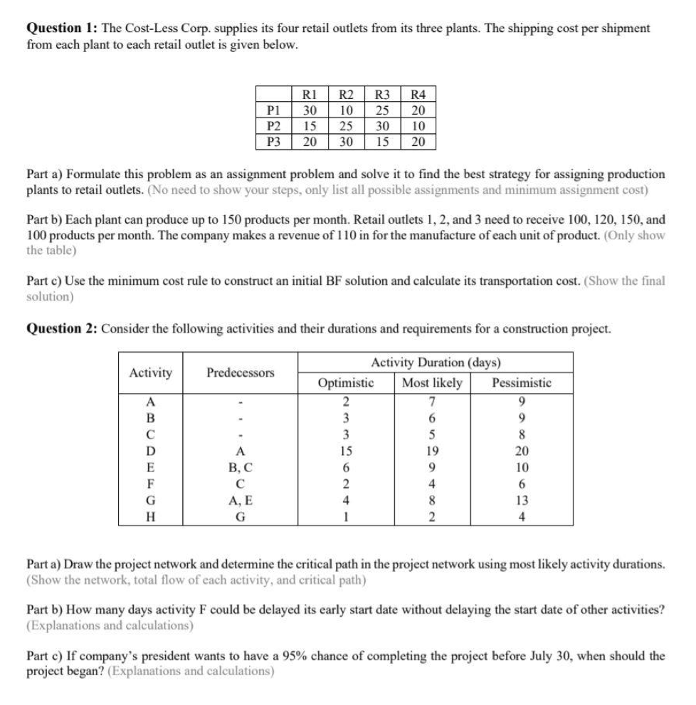 Question 1: The Cost-Less Corp. supplies its four retail outlets fr...