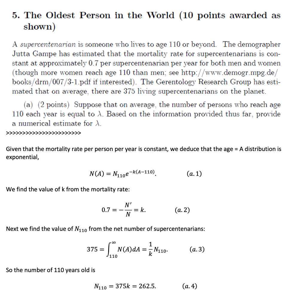 5. The Oldest Person in the World (10 points awarded as shown) A ...