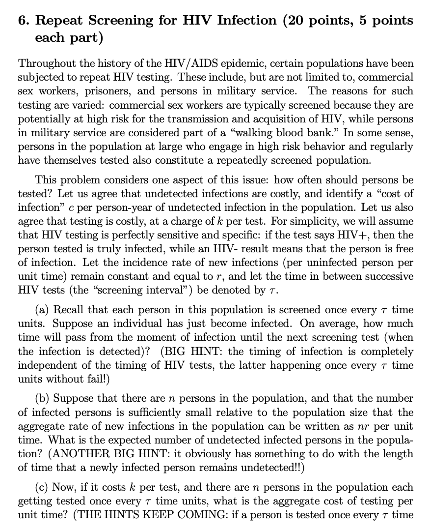 6. Repeat Screening for HIV Infection (20 points, 5 points each pa...