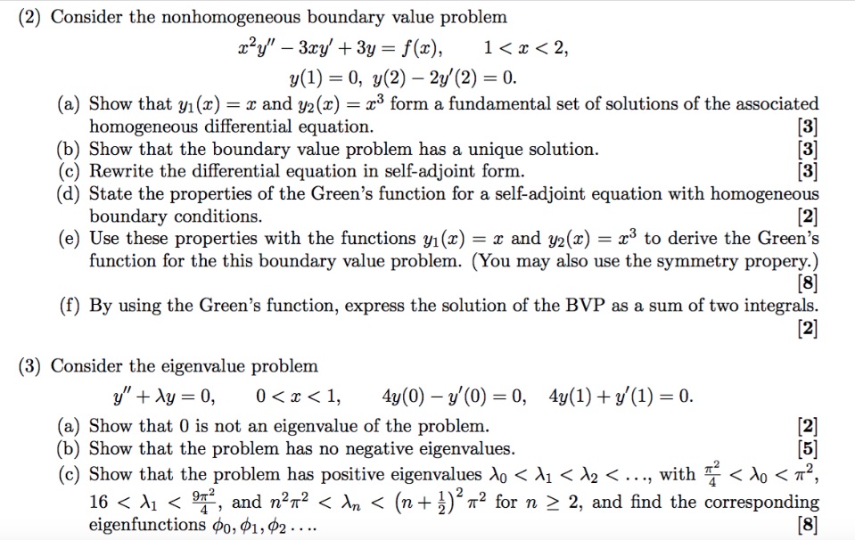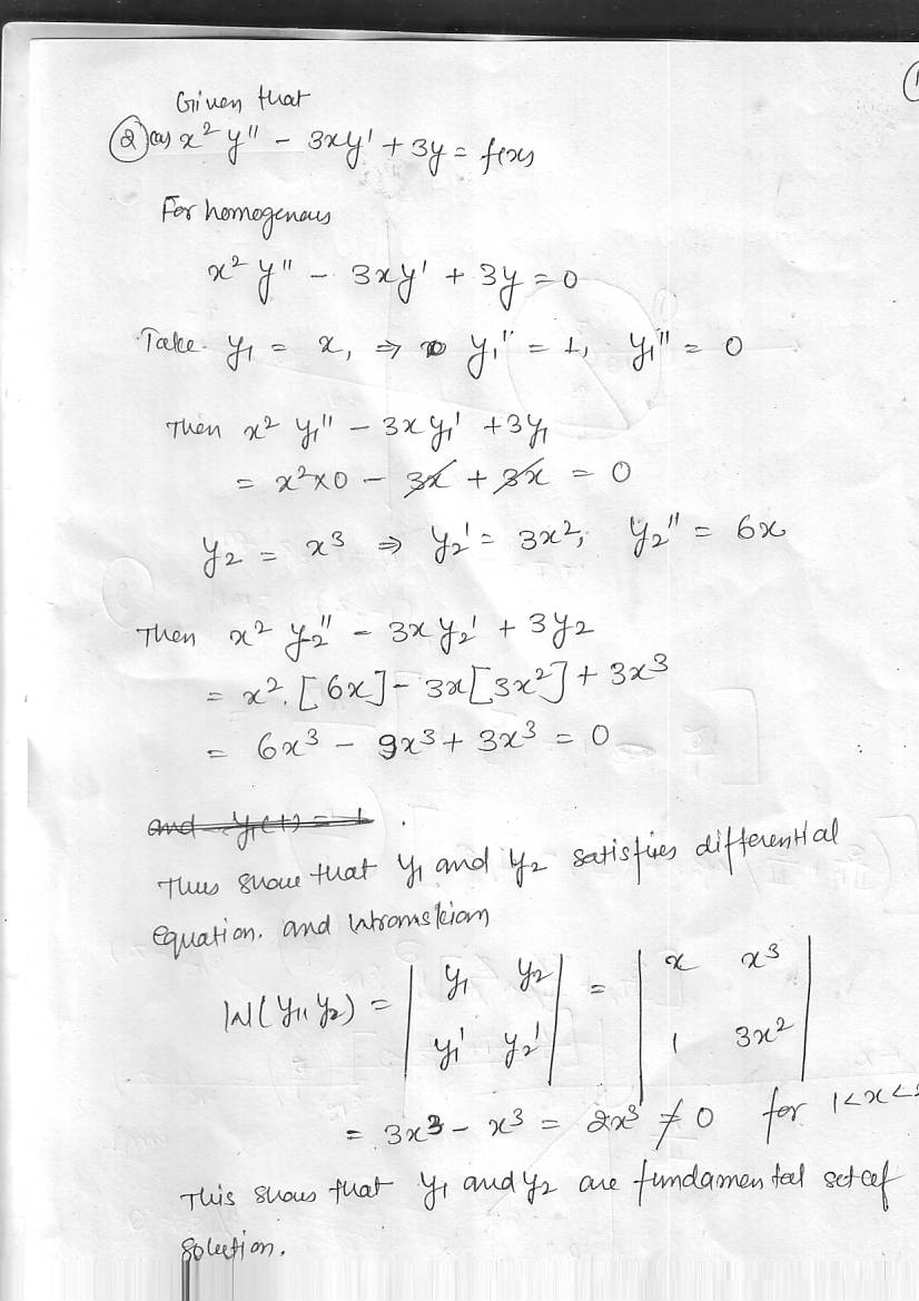 (2) Consider the nonhomogeneous boundary value problem x2y"-3...