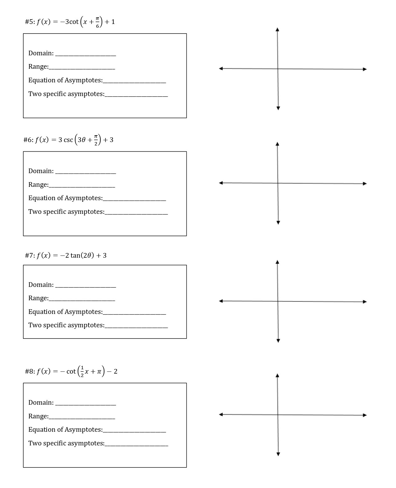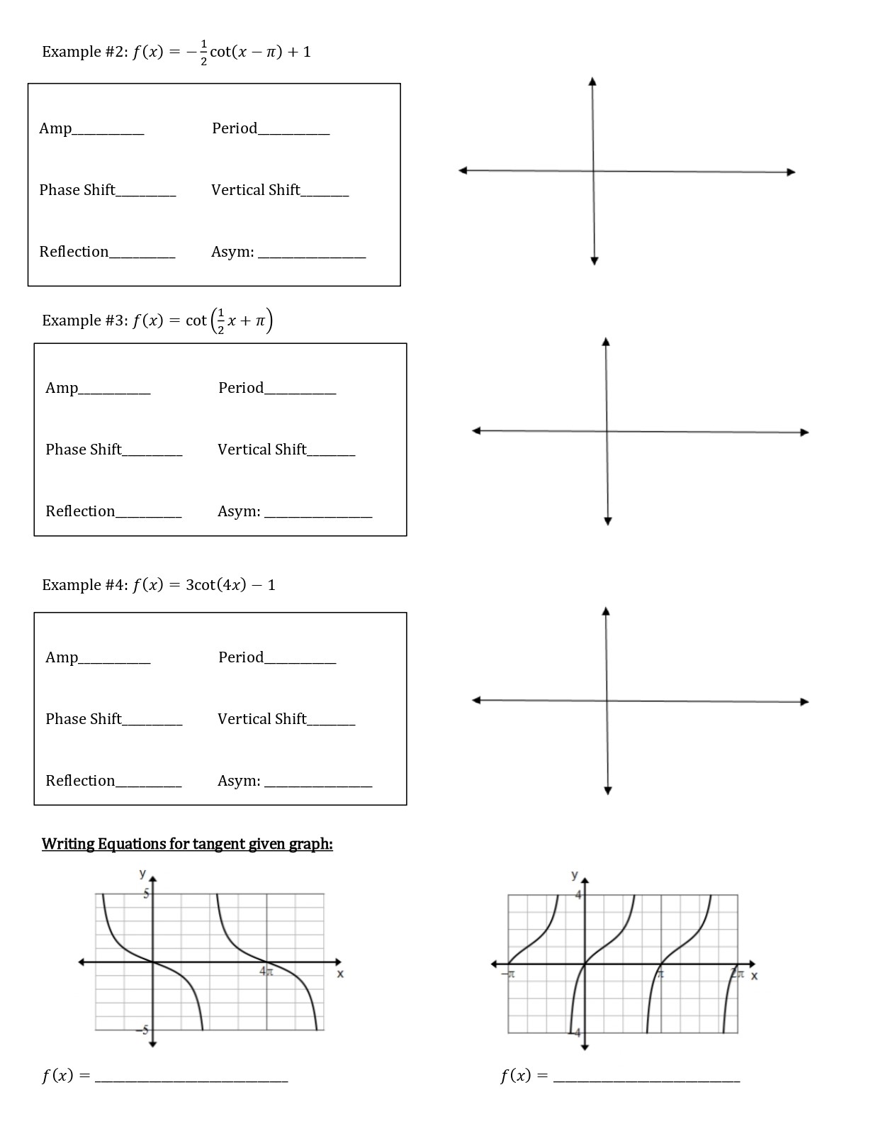 Example #2: f(x)= = 1cot(x-nr - + 1 Amp Period Phase Shift Vert...