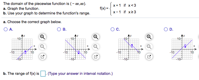 The domain of the piecewise function is ( - 00,00). x+1 if x<3 ...