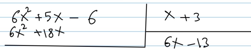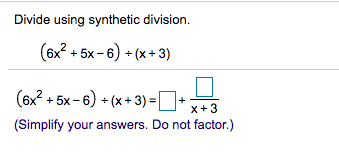 Divide using synthetic division. (6x2+5x-6)+(x+3) = + x+3 (Sim...