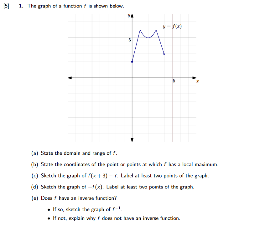 [5] 1. The graph of a function f is shown below. y y = f(x) 5 ...