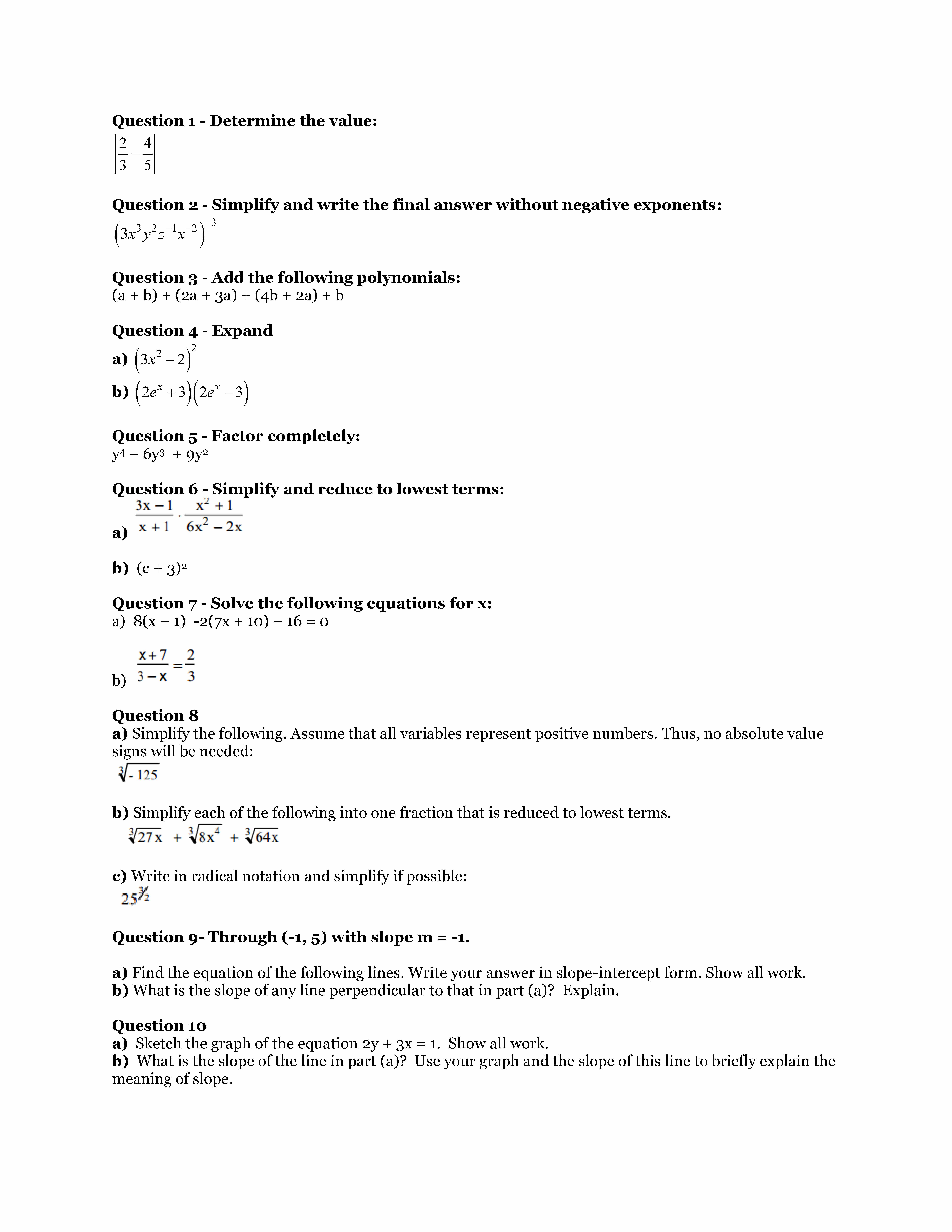 Question 1 Determine the value: 2 4 3 5 Question Simplify and wr...