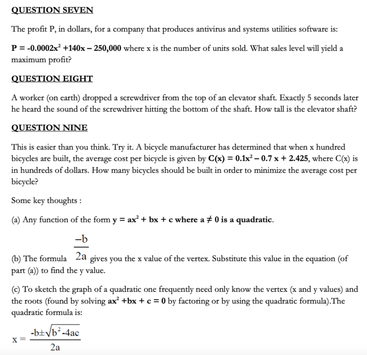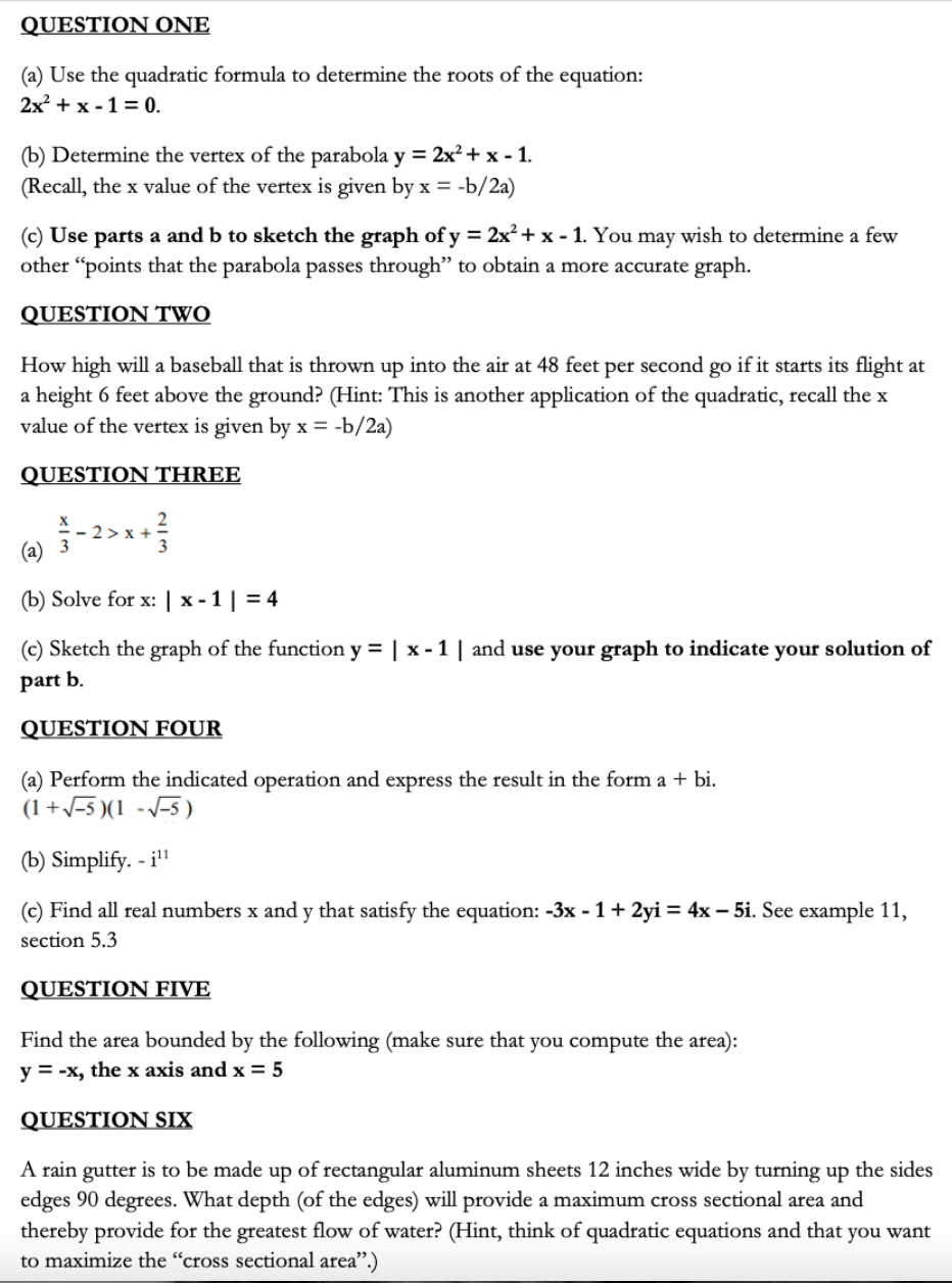 QUESTION ONE (a) Use the quadratic formula to determine the roots...