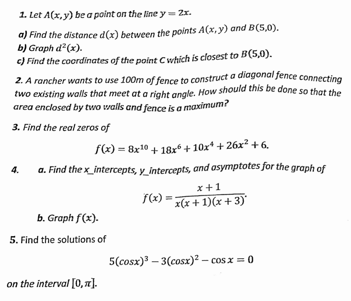 1. Let A(x,y) be a point on the line y = 2x. a) Find the distance...
