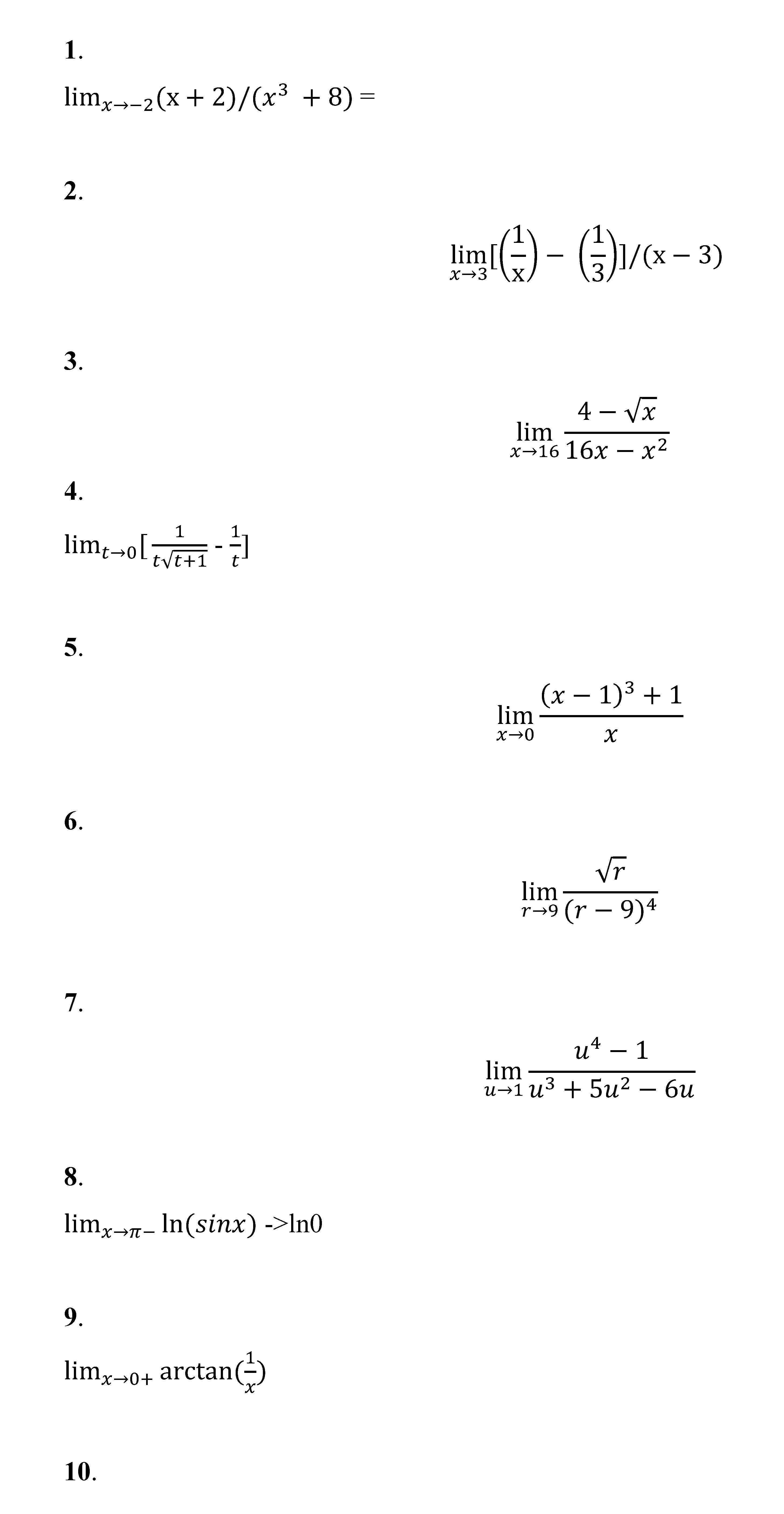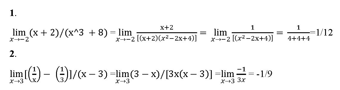1. limx-2 (x+ 2)/(x³ +8) = 2. lim| € - x-33 3. 4-Vx ...