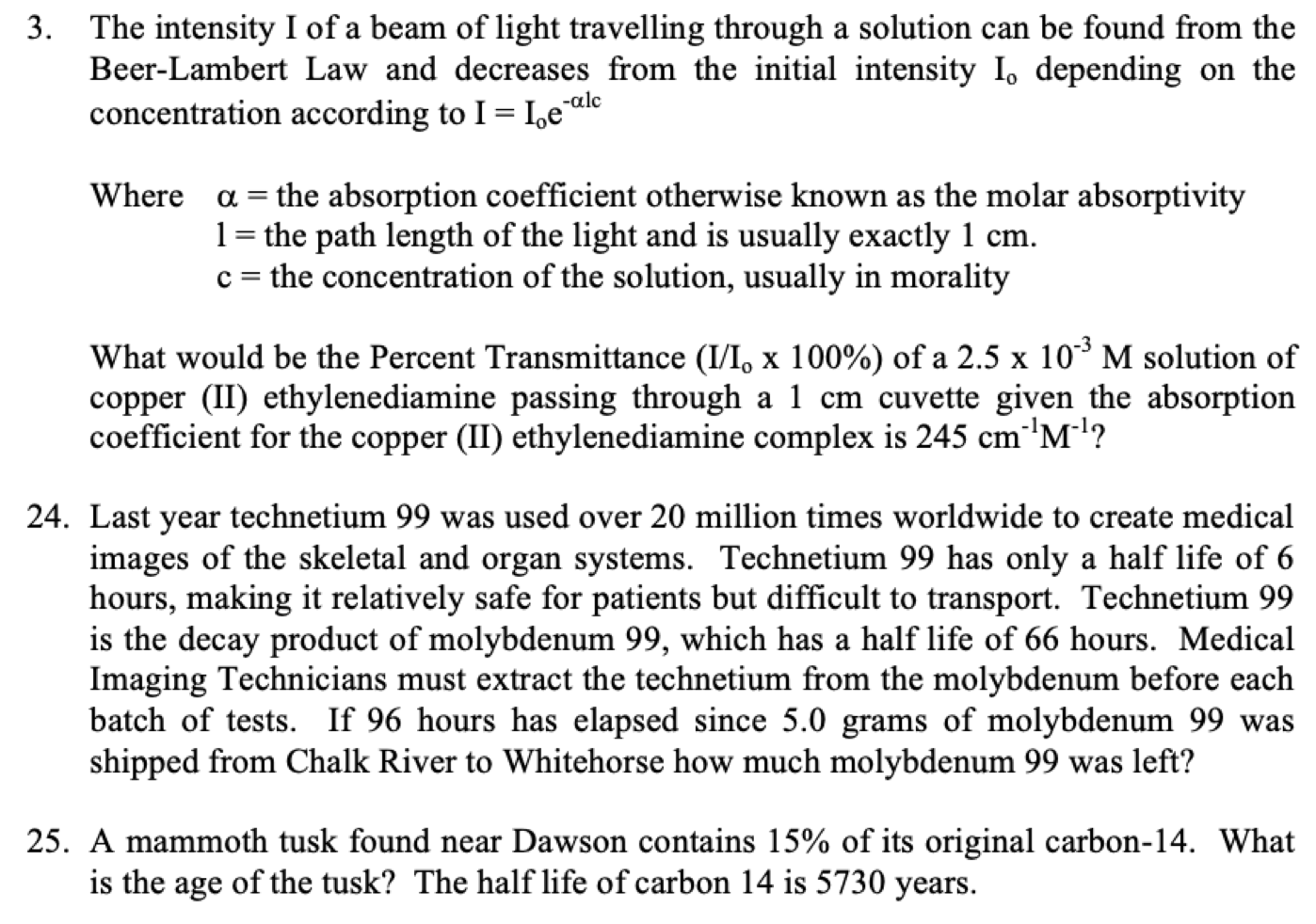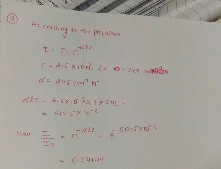 3. The intensity I of a beam of light travelling through a solutio...