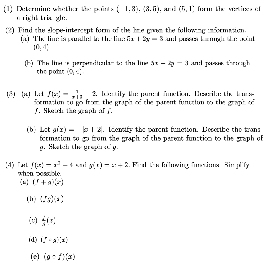 (1) Determine whether the points (-1,3), (3,5), and (5,1) form the ...