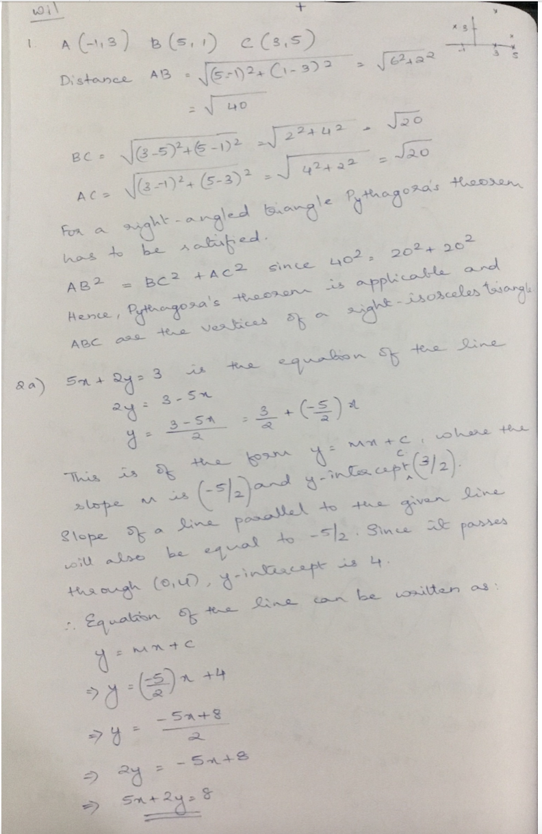 (1) Determine whether the points (-1,3), (3,5), and (5,1) form the...