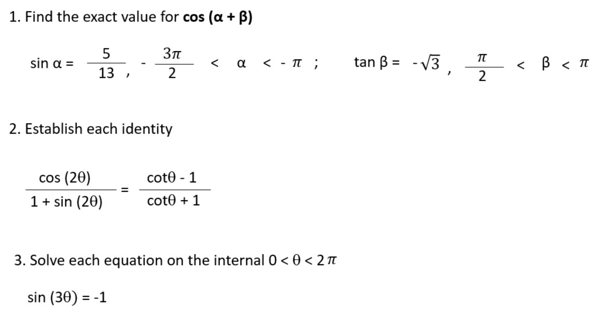3. Solve each equation on the internal 0 < 0 < 2 IT sin (30) ...