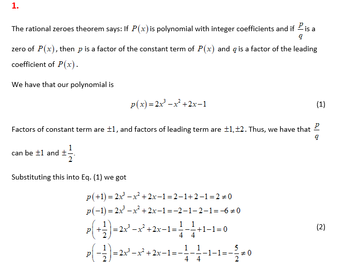 1) Use the rational zeros theorem to find all of the real zeros of ...