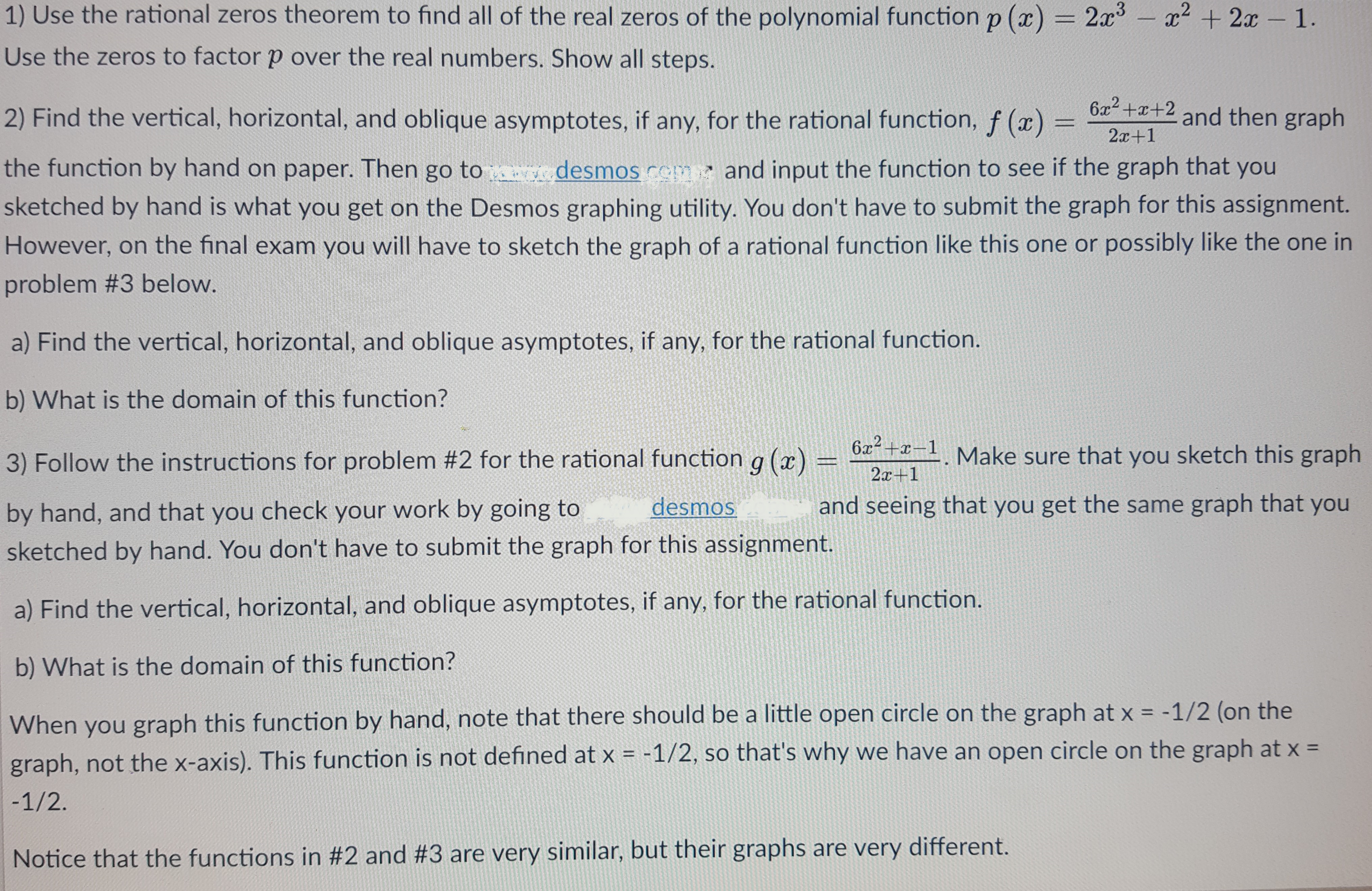1) Use the rational zeros theorem to find all of the real zeros of...