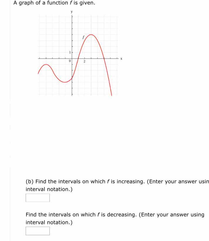 A graph of a function f is given. 1 x (b) Find the intervals on ...