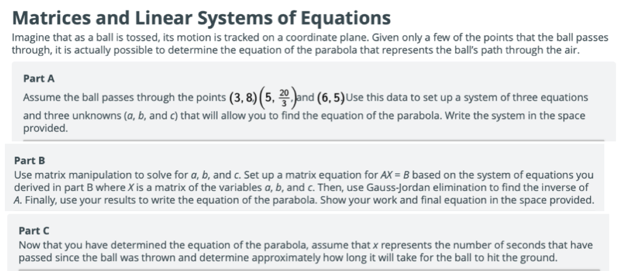 Matrices and Linear Systems of Equations Imagine that as a ball is...