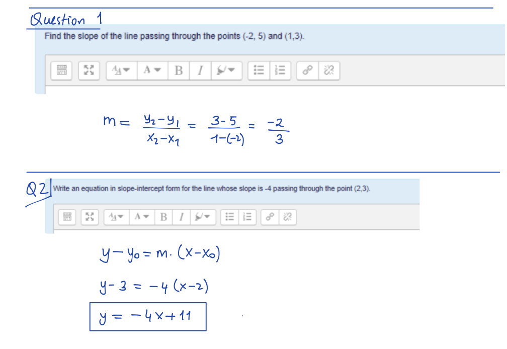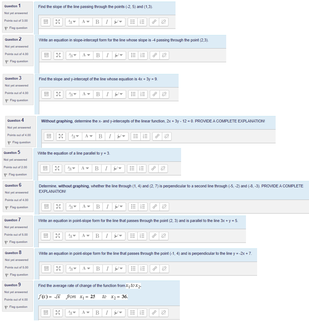 Question 1 Find the slope of the line passing through the points (...