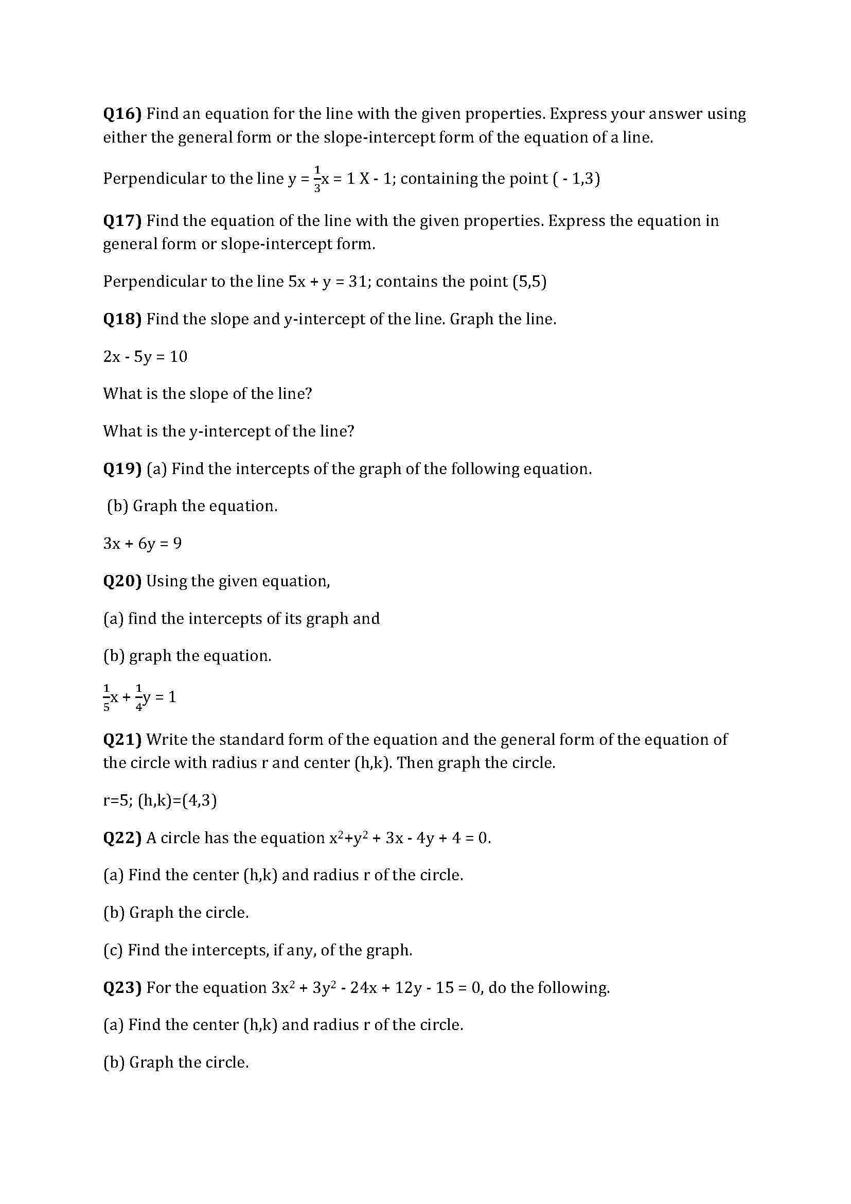 Q16) Find an equation for the line with the given properties. Expre...